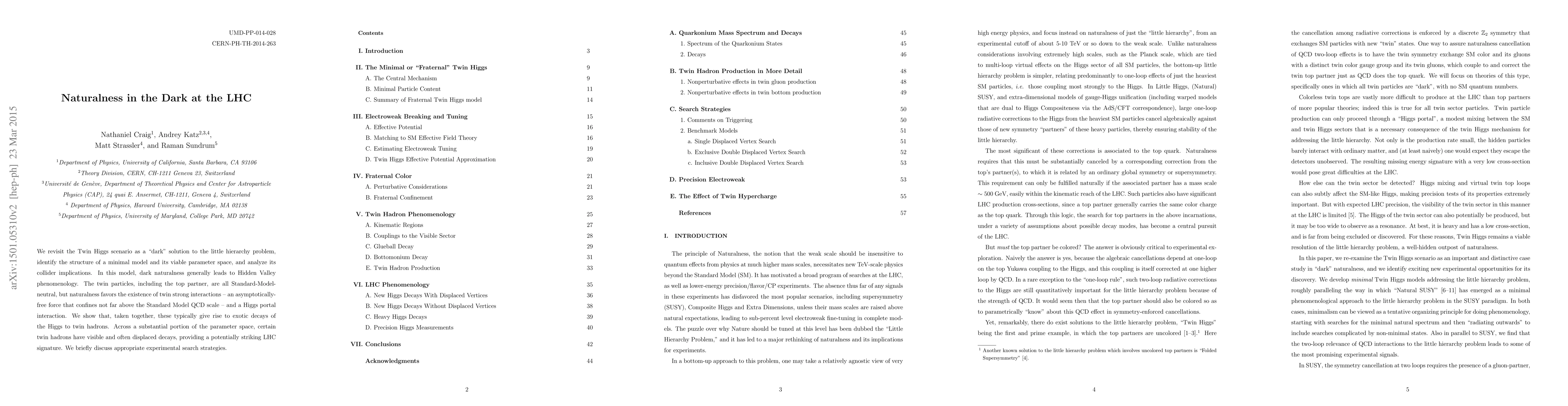We revisit the Twin Higgs scenario as a "dark" solution to the little hierarchy problem, identify the structure of a minimal model and its viable parameter space, and analyze its collider implications. In this model, dark naturalness generally leads to Hidden Valley phenomenology. The twin particles, including the top partner, are all Standard-Model-neutral, but naturalness favors the existence of twin strong interactions -- an asymptotically-free force that confines not far above the Standard Model QCD scale -- and a Higgs portal interaction. We show that, taken together, these typically give rise to exotic decays of the Higgs to twin hadrons. Across a substantial portion of the parameter space, certain twin hadrons have visible and often displaced decays, providing a potentially striking LHC signature. We briefly discuss appropriate experimental search strategies.