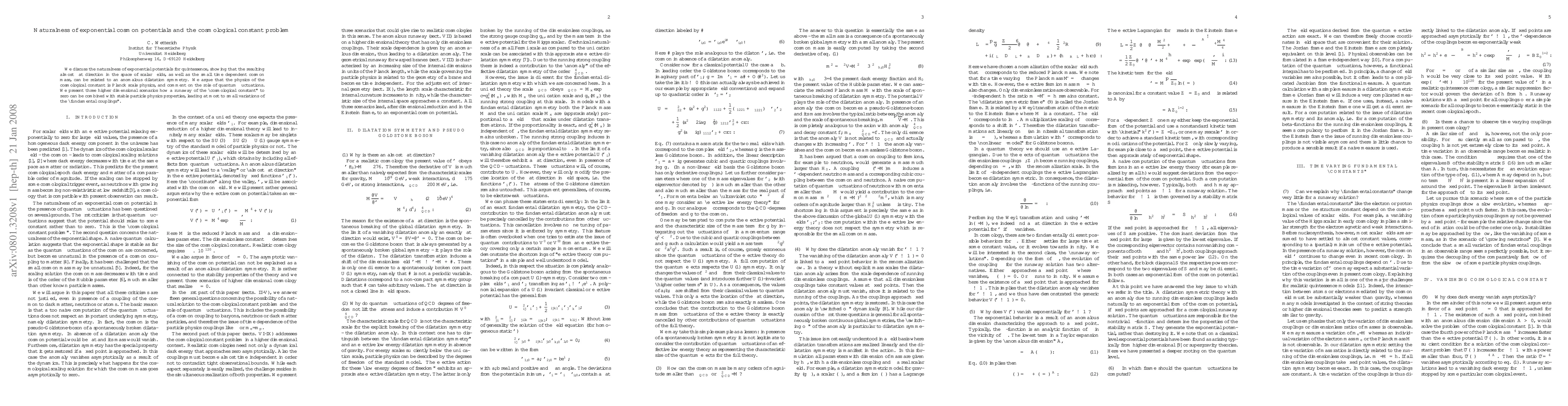 We discuss the naturalness of exponential potentials for quintessence, showing that the resulting almost flat direction in the space of scalar fields, as well as the small time dependent cosmon mass, can be related to an anomalous dilatation symmetry. We argue that the physics of the cosmological constant is Planck scale physics, and comment on the role of quantum fluctuations. We present three higher dimensional scenarios how a runaway of the ``cosmological constant'' to zero can be combined with stable particle physics properties, leading at most to small variations of the ``fundamental couplings''.