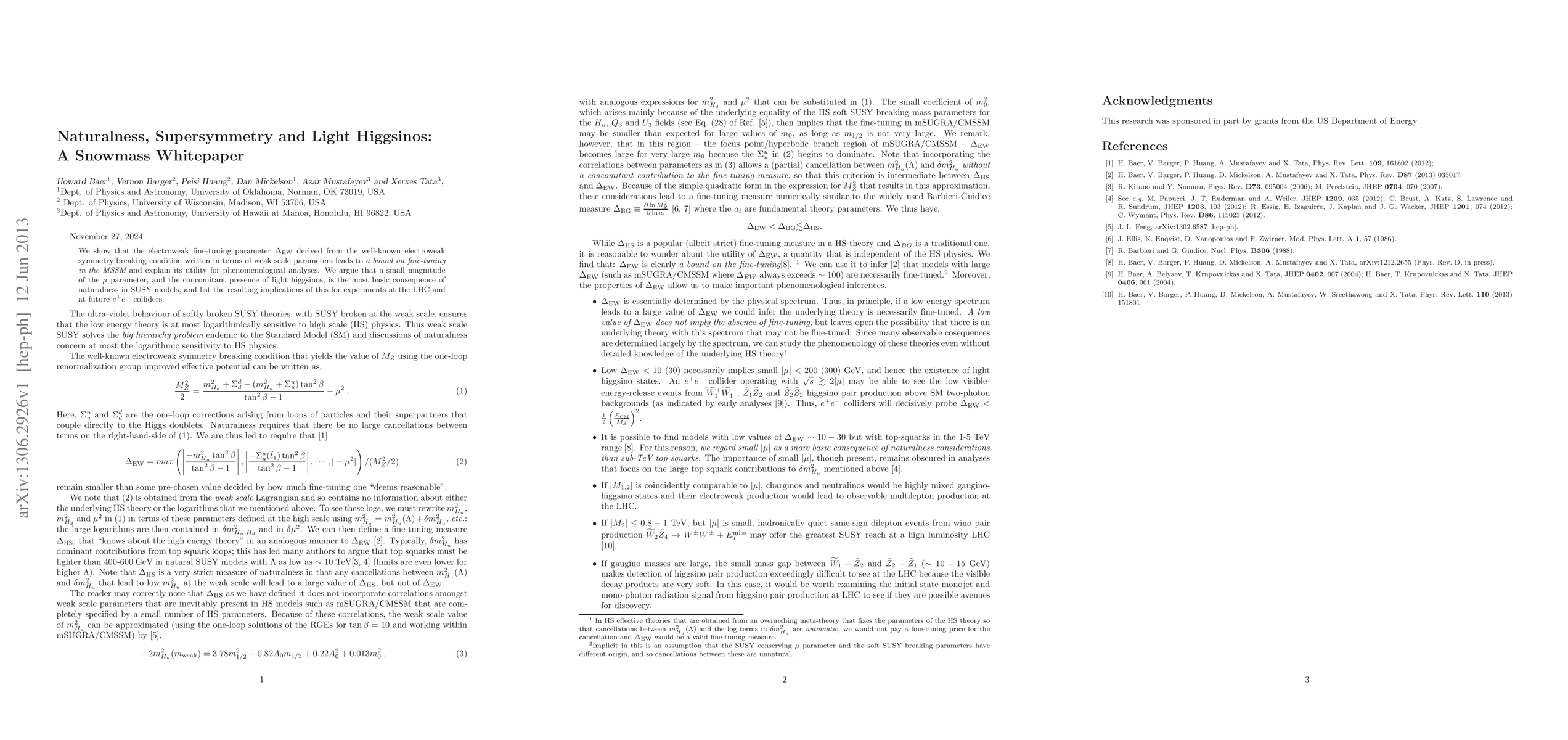This paper argues that naturalness in supersymmetric models leads to a small mu parameter and light higgsinos, which provides a bound on fine-tuning in the Minimal Supersymmetric Standard Model (MSSM). It discusses the implications for experimental searches at the LHC and future electron-positron colliders.