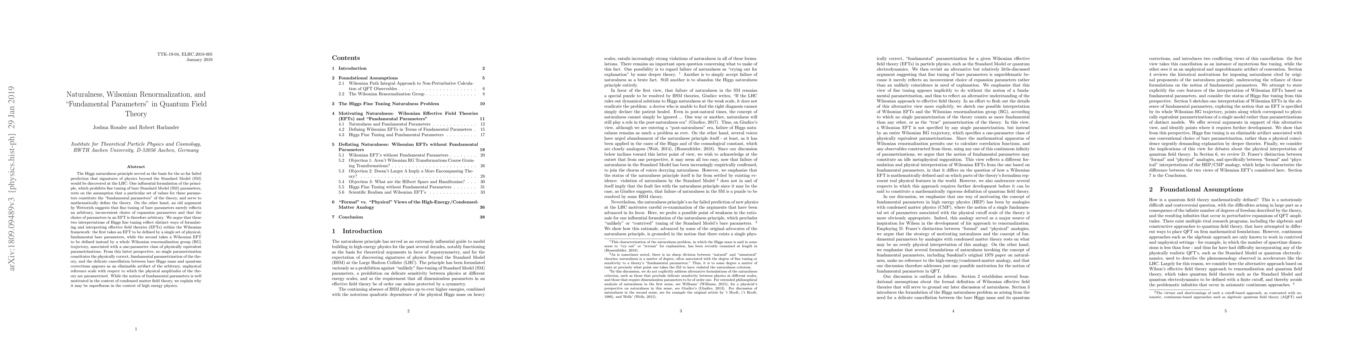 This paper discusses the Higgs naturalness principle and its implications for the Standard Model, arguing that the concept of "fundamental parameters" in EFTs is unnecessary in high energy physics. It contrasts two interpretations of fine tuning within the Wilsonian framework, suggesting that the latter view aligns better with the renormalization group approach.