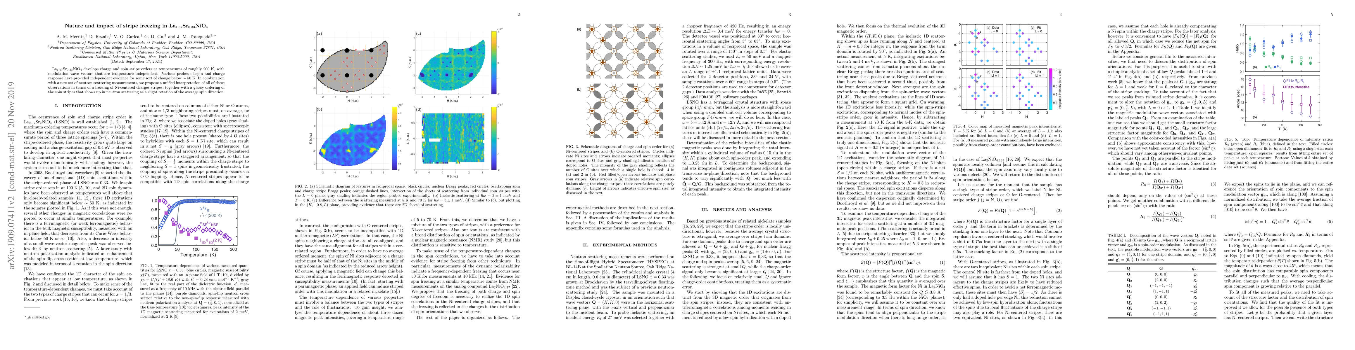 La$_{1.67}$Sr$_{0.33}$NiO$_4$ develops charge and spin stripe orders at temperatures of roughly 200 K, with modulation wave vectors that are temperature independent. Various probes of spin and charge response have provided independent evidence for some sort of change below $\sim50$ K. In combination with a new set of neutron scattering measurements, we propose a unified interpretation of all of these observations in terms of a freezing of Ni-centered charges stripes, together with a glassy ordering of the spin stripes that shows up in neutron scattering as a slight rotation of the average spin direction.