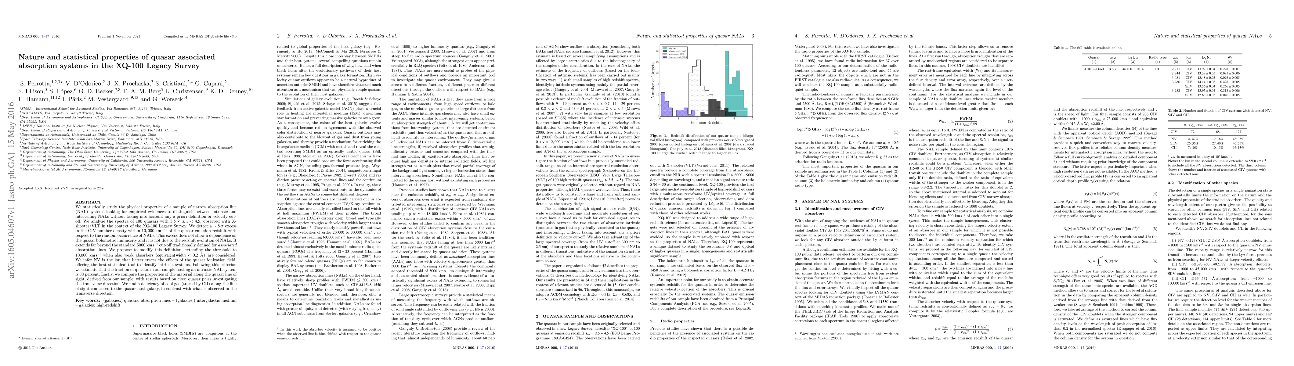 We statistically study the physical properties of a sample of narrow absorption line (NAL) systems looking for empirical evidences to distinguish between intrinsic and intervening NALs without taking into account any a priori definition or velocity cut-off. We analyze the spectra of 100 quasars with 3.5 < z$\rm_{em}$ < 4.5, observed with X-shooter/VLT in the context of the XQ-100 Legacy Survey. We detect a $\sim$ 8 $\sigma$ excess in the number density of absorbers within 10,000 km/s of the quasar emission redshift with respect to the random occurrence of NALs. This excess does not show a dependence on the quasar bolometric luminosity and it is not due to the redshift evolution of NALs. It extends far beyond the standard 5000 km/s cut-off traditionally defined for associated absorption lines. We propose to modify this definition, extending the threshold to 10,000 km/s when also weak absorbers (equivalent width < 0.2 \AA) are considered. We infer NV is the ion that better traces the effects of the quasar ionization field, offering the best statistical tool to identify intrinsic systems. Following this criterion we estimate that the fraction of quasars in our sample hosting an intrinsic NAL system is 33 percent. Lastly, we compare the properties of the material along the quasar line of sight, derived from our sample, with results based on close quasar pairs investigating the transverse direction. We find a deficiency of cool gas (traced by CII) along the line of sight associated with the quasar host galaxy, in contrast with what is observed in the transverse direction.