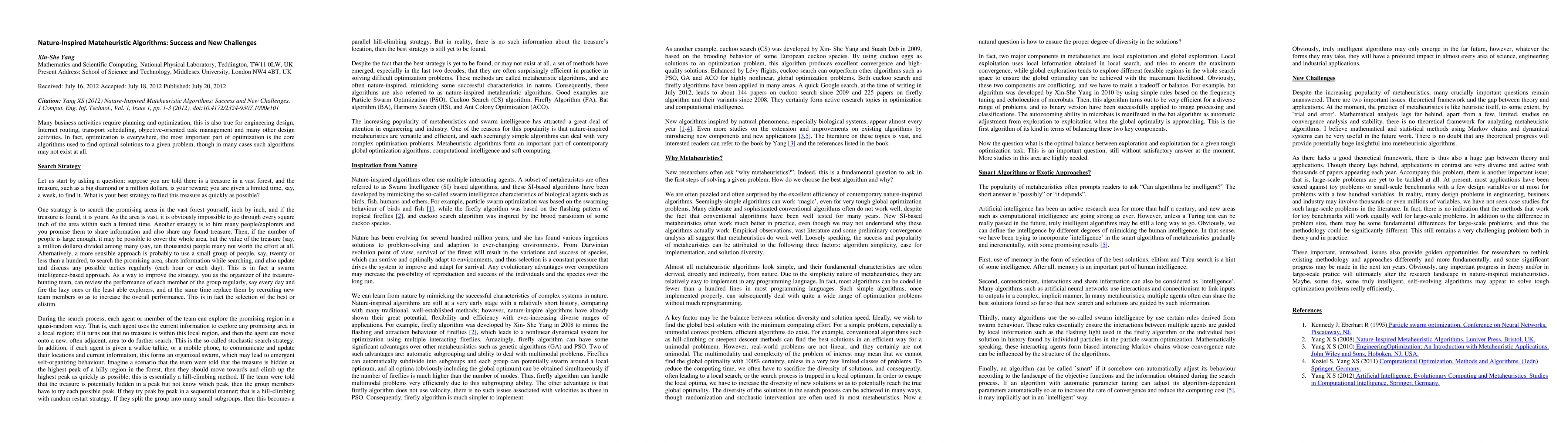 Despite the increasing popularity of metaheuristics, many crucially important questions remain unanswered. There are two important issues: theoretical framework and the gap between theory and applications. At the moment, the practice of metaheuristics is like heuristic itself, to some extent, by trial and error. Mathematical analysis lags far behind, apart from a few, limited, studies on convergence analysis and stability, there is no theoretical framework for analyzing metaheuristic algorithms. I believe mathematical and statistical methods using Markov chains and dynamical systems can be very useful in the future work. There is no doubt that any theoretical progress will provide potentially huge insightful into meteheuristic algorithms.