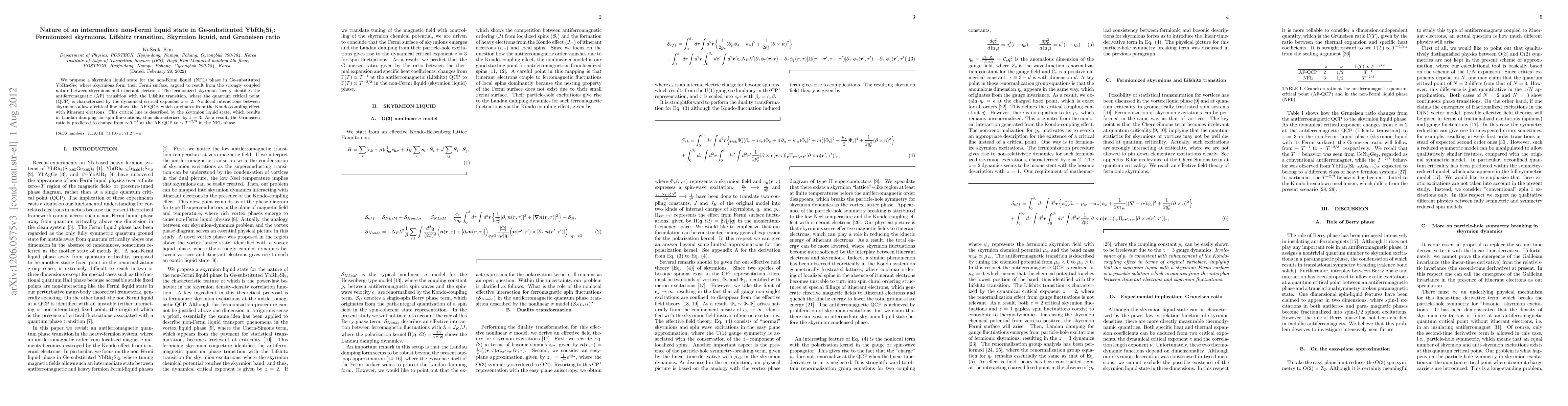 This paper proposes a skyrmion liquid state for the non-Fermi liquid phase in Ge-substituted YbRh$_{2}$Si$_{2}$, attributing the Lifshitz transition to an antiferromagnetic transition and predicting a change in the Gruneisen ratio from $\sim T^{-1}$ to $\sim T^{-2/3}$ as the system transitions from the quantum critical point to the non-Fermi liquid phase.