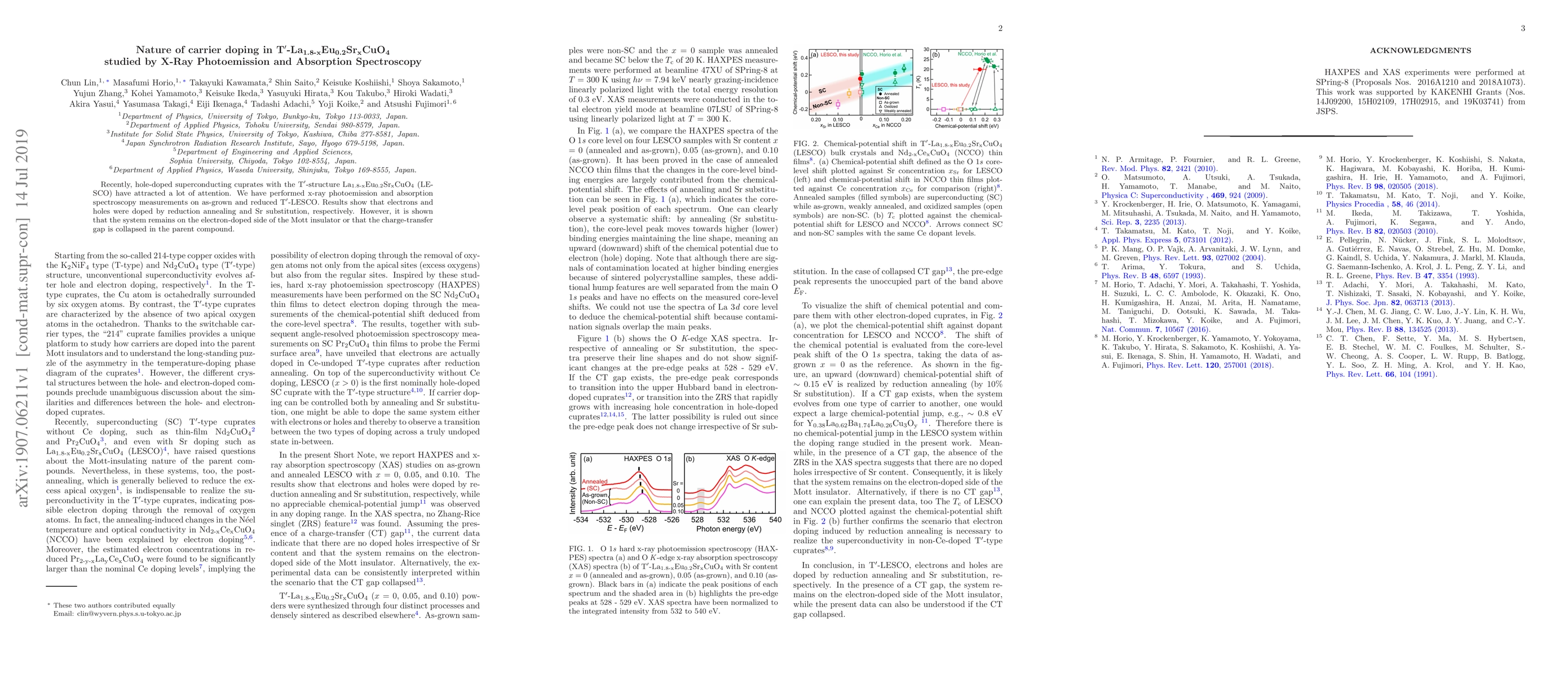 This paper investigates the carrier doping mechanisms in T'-La1.8-xEu0.2SrxCuO4 using x-ray photoemission and absorption spectroscopy. The study reveals that reduction annealing introduces electrons while Sr substitution adds holes, yet the system stays on the electron-doped side or exhibits a collapsed charge-transfer gap.