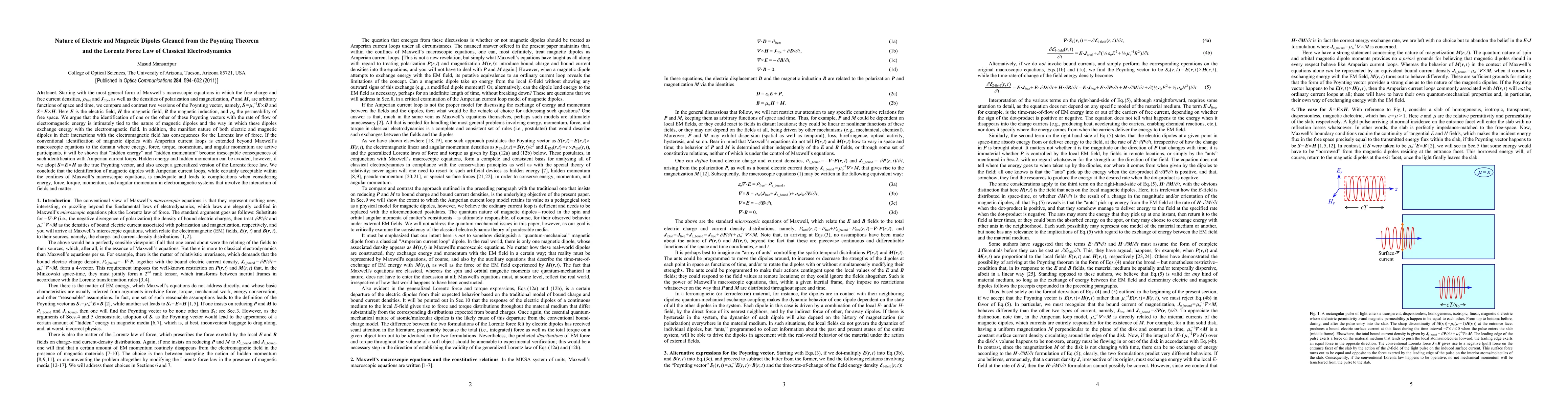 Starting with the most general form of Maxwell's macroscopic equations in which the free charge and free current densities, rho_free and J_free, as well as the densities of polarization and magnetization, P and M, are arbitrary functions of space and time, we compare and contrast two versions of the Poynting vector, namely, S=ExB/mu_0 and S=ExH. Here E is the electric field, H the magnetic field, B the magnetic induction, and mu_0 the permeability of free space. We argue that the identification of one or the other of these Poynting vectors with the rate of flow of electromagnetic energy is intimately tied to the nature of magnetic dipoles and the way in which these dipoles exchange energy with the electromagnetic field. In addition, the manifest nature of both electric and magnetic dipoles in their interactions with the electromagnetic field has consequences for the Lorentz law of force. If the conventional identification of magnetic dipoles with Amperian current loops is extended beyond Maxwell's macroscopic equations to the domain where energy, force, torque, momentum, and angular momentum are active participants, it will be shown that "hidden energy" and "hidden momentum" become inescapable consequences of such identification with Amperian current loops. Hidden energy and hidden momentum can be avoided, however, if we adopt S=ExH as the true Poynting vector, and also accept a generalized version of the Lorentz force law. We conclude that the identification of magnetic dipoles with Amperian current loops, while certainly acceptable within the confines of Maxwell's macroscopic equations, is inadequate and leads to complications when considering energy, force, torque, momentum, and angular momentum in electromagnetic systems that involve the interaction of fields and matter.