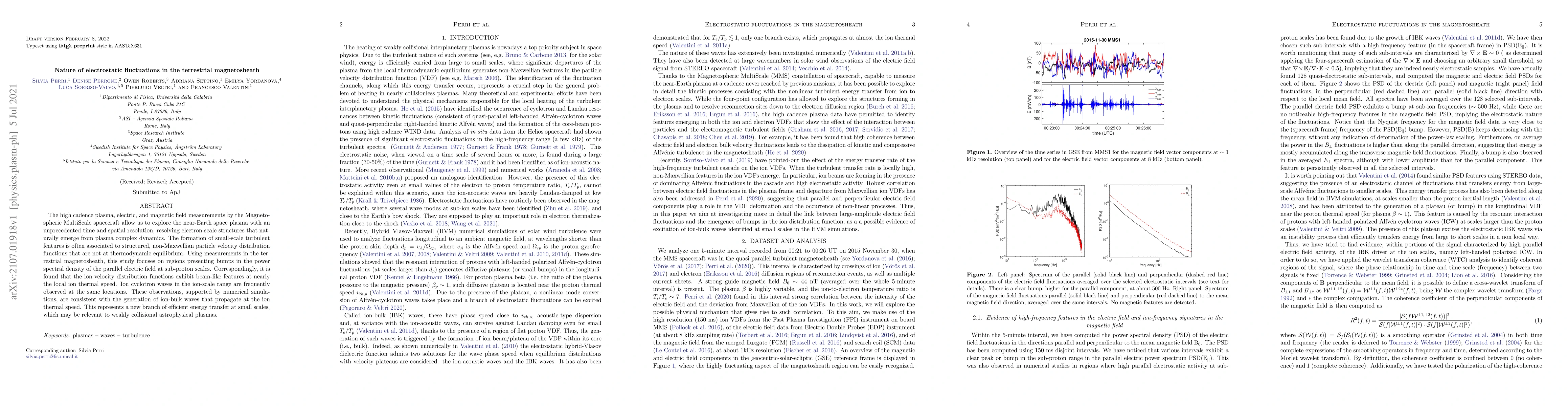 This study investigates electrostatic fluctuations in the terrestrial magnetosheath using high-resolution measurements, revealing electron-scale turbulent features linked to non-equilibrium ion velocity distributions. The findings suggest that ion-bulk waves propagate at the ion thermal speed, indicating a new mechanism for energy transfer in weakly collisional plasmas.