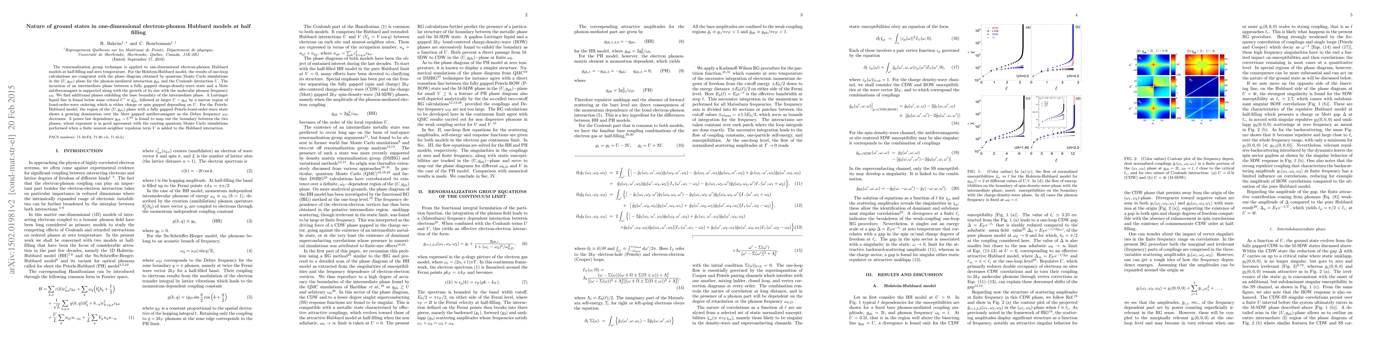 The renormalization group technique is applied to one-dimensional electron-phonon Hubbard models at half-filling and zero temperature. For the Holstein-Hubbard model, the results of one-loop calculations are congruent with the phase diagram obtained by quantum Monte Carlo simulations in the $(U,g_{\rm ph})$ plane for the phonon-mediated interaction $g_{\rm ph}$ and the Coulomb interaction $U$. The incursion of an intermediate phase between a fully gapped charge-density-wave state and a Mott antiferromagnet is supported along with the growth of its size with the molecular phonon frequency $\omega_0$. We find additional phases enfolding the base boundary of the intermediate phase. A Luttinger liquid line is found below some critical $ U^*\approx g^*_{\rm ph}$, followed at larger $U\sim g_{\rm ph}$ by a narrow region of bond-order-wave ordering which is either charge or spin gapped depending on $U$. For the Peierls-Hubbard model, the region of the $(U,g_{\rm ph})$ plane with a fully gapped Peierls-bond-order-wave state shows a growing domination over the Mott gapped antiferromagnet as the Debye frequency $\omega_D$ decreases. A power law dependence $g_{\rm ph} \sim U^{2\eta}$ is found to map out the boundary between the two phases, whose exponent is in good agreement with the existing quantum Monte Carlo simulations performed when a finite nearest-neighbor repulsion term $V$ is added to the Hubbard interaction.