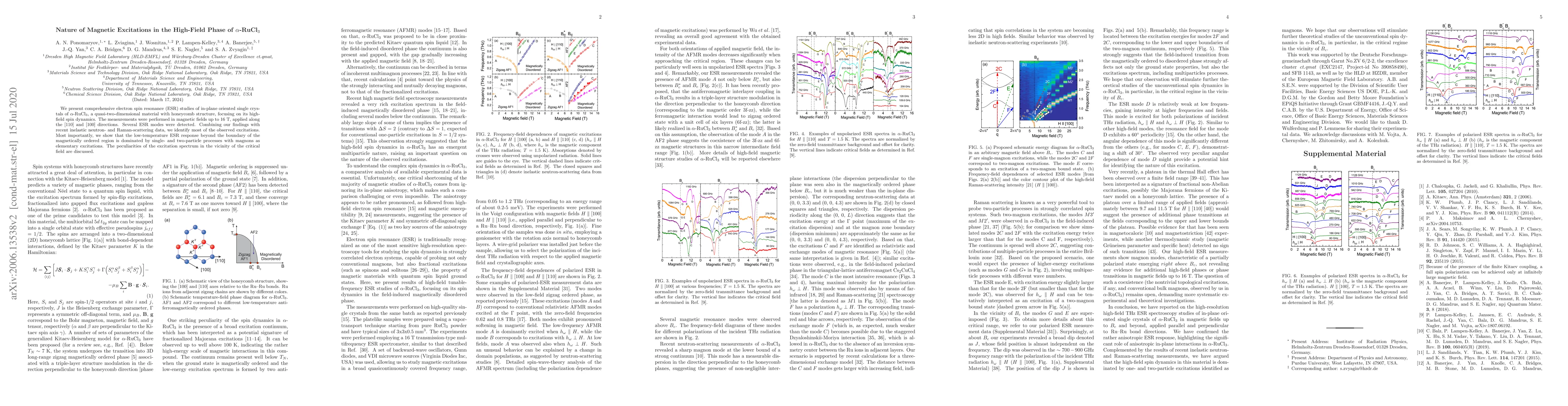 We present comprehensive electron spin resonance (ESR) studies of in-plane oriented single crystals of $\alpha$-RuCl$_3$, a quasi-two-dimensional material with honeycomb structure, focusing on its high-field spin dynamics. The measurements were performed in magnetic fields up to 16 T, applied along the [110] and [100] directions. Several ESR modes were detected. Combining our findings with recent inelastic neutron- and Raman-scattering data, we identify most of the observed excitations. Most importantly, we show that the low-temperature ESR response beyond the boundary of the magnetically ordered region is dominated by single- and two-particle processes with magnons as elementary excitations. The peculiarities of the excitation spectrum in the vicinity of the critical field are discussed.