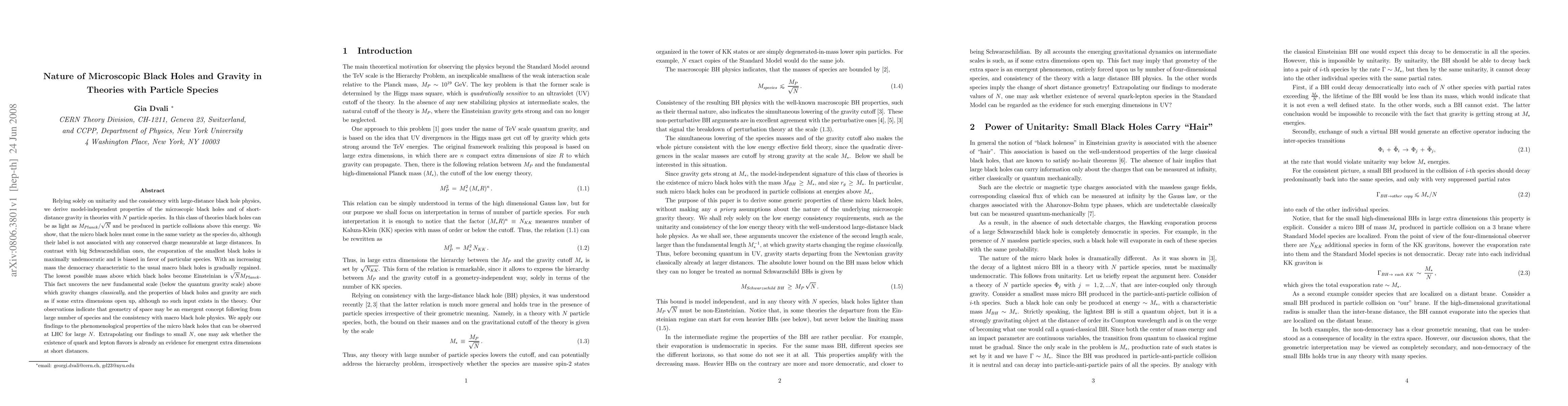 This paper derives model-independent properties of microscopic black holes in theories with N particle species, showing they can be as light as \(M_{Planck}/\sqrt{N}\). It reveals that these micro black holes evaporate in a biased manner favoring particular species, with democracy returning as mass increases.