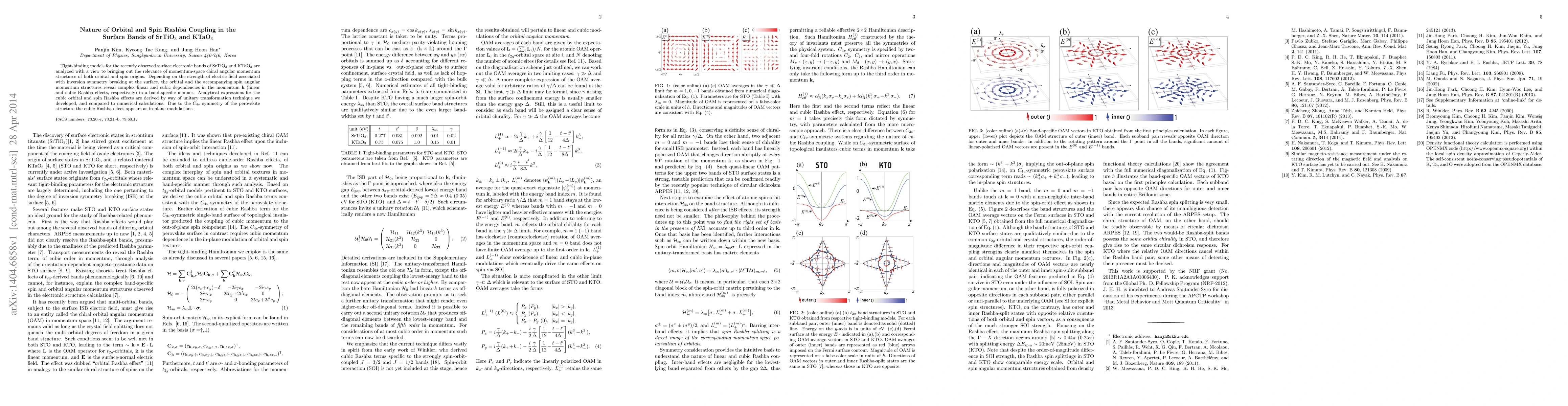 Researchers investigated the surface electronic bands of SrTiO3 and KTaO3, finding complex linear and cubic dependencies in momentum k due to electric field effects, and derived analytical expressions for these effects.