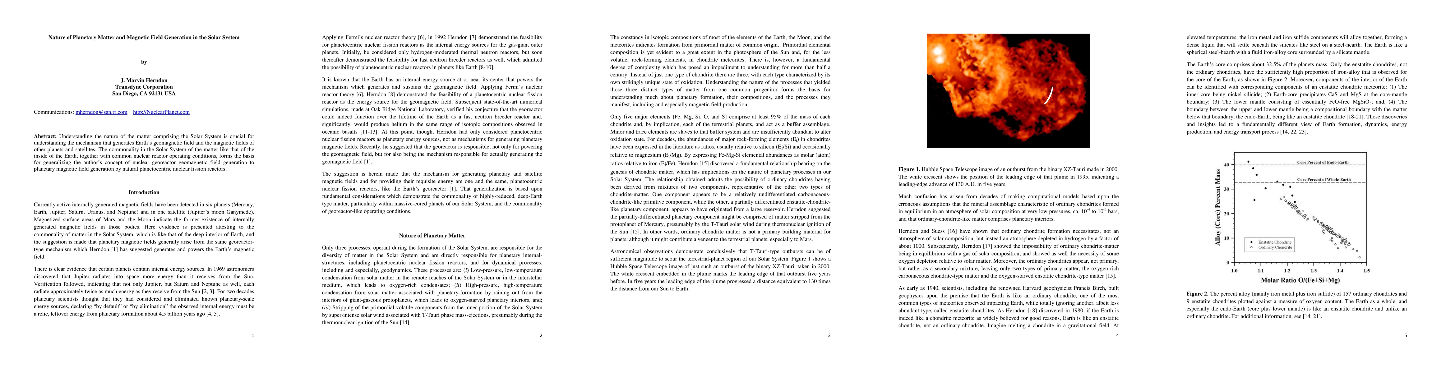 Understanding the nature of the matter comprising the Solar System is crucial for understanding the mechanism that generates the Earth's geomagnetic field and the magnetic fields of other planets and satellites. The commonality in the Solar System of matter like that of the inside of the Earth, together with common nuclear reactor operating conditions,forms the basis for generalizing the author's concept of nuclear geomagnetic field generation to planetary magnetic field generation by natural planetocentric nuclear fission reactors.