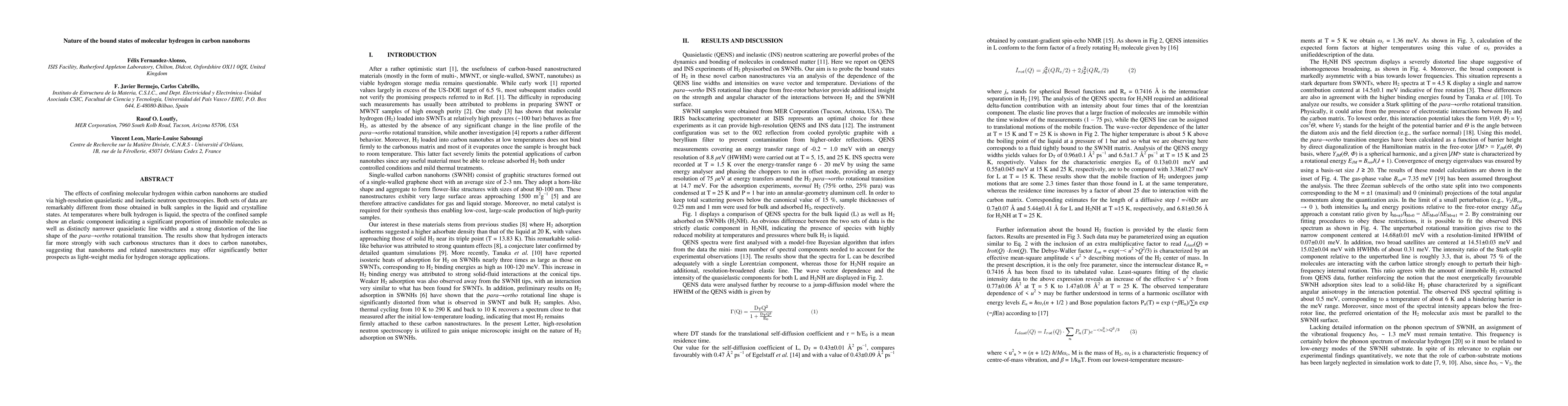 This study reveals that confining molecular hydrogen in carbon nanohorns significantly alters its behavior compared to bulk hydrogen, showing stronger interactions and better storage potential due to unique rotational transition distortions and immobility of molecules. Carbon nanohorns may thus outperform carbon nanotubes for hydrogen storage.