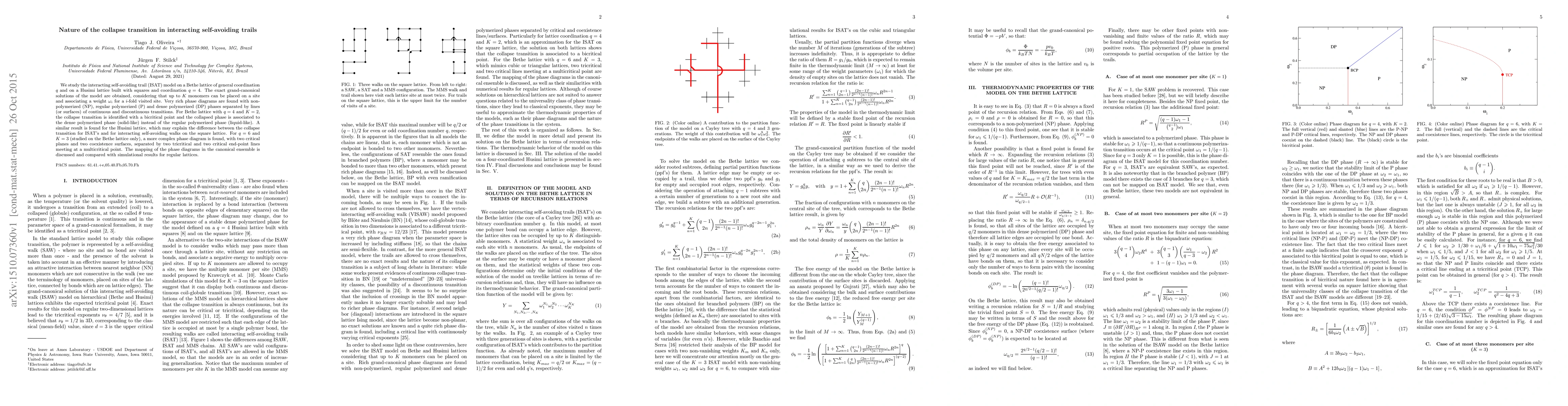 We study the interacting self-avoiding trail (ISAT) model on a Bethe lattice of general coordination $q$ and on a Husimi lattice built with squares and coordination $q=4$. The exact grand-canonical solutions of the model are obtained, considering that up to $K$ monomers can be placed on a site and associating a weight $\omega_i$ for a $i$-fold visited site. Very rich phase diagrams are found with non-polymerized (NP), regular polymerized (P) and dense polymerized (DP) phases separated by lines (or surfaces) of continuous and discontinuous transitions. For Bethe lattice with $q=4$ and $K=2$, the collapse transition is identified with a bicritical point and the collapsed phase is associated to the dense polymerized phase (solid-like) instead of the regular polymerized phase (liquid-like). A similar result is found for the Husimi lattice, which may explain the difference between the collapse transition for ISAT's and for interacting self-avoiding walks on the square lattice. For $q=6$ and $K=3$ (studied on the Bethe lattice only), a more complex phase diagram is found, with two critical planes and two coexistence surfaces, separated by two tricritical and two critical end-point lines meeting at a multicritical point. The mapping of the phase diagrams in the canonical ensemble is discussed and compared with simulational results for regular lattices.