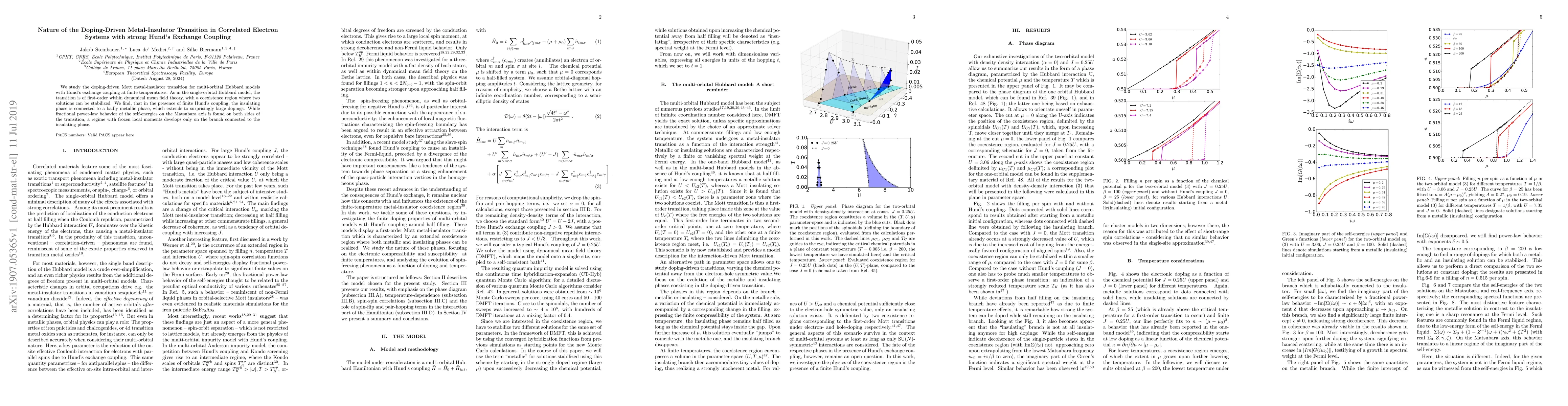 This paper investigates the metal-insulator transition in multi-orbital Hubbard models with Hund's coupling, revealing a first-order transition with a coexistence region. The study finds that the insulating phase links to a poorly metallic phase extending to large doping levels, with distinct self-energy behaviors and a regime of frozen local moments.