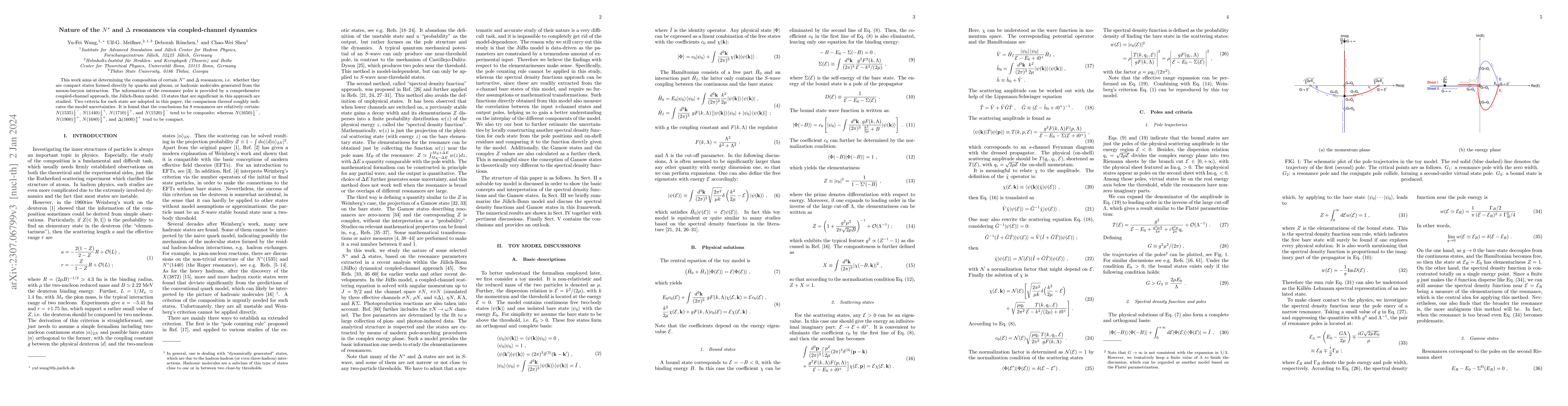 This paper investigates the nature of $N^*$ and $\Delta$ resonances using the Jülich-Bonn model, determining whether they are quark-gluon states or hadronic molecules. The study finds that $8$ out of $13$ resonances have relatively certain compositions: $4$ are likely composite, while $4$ are likely compact.