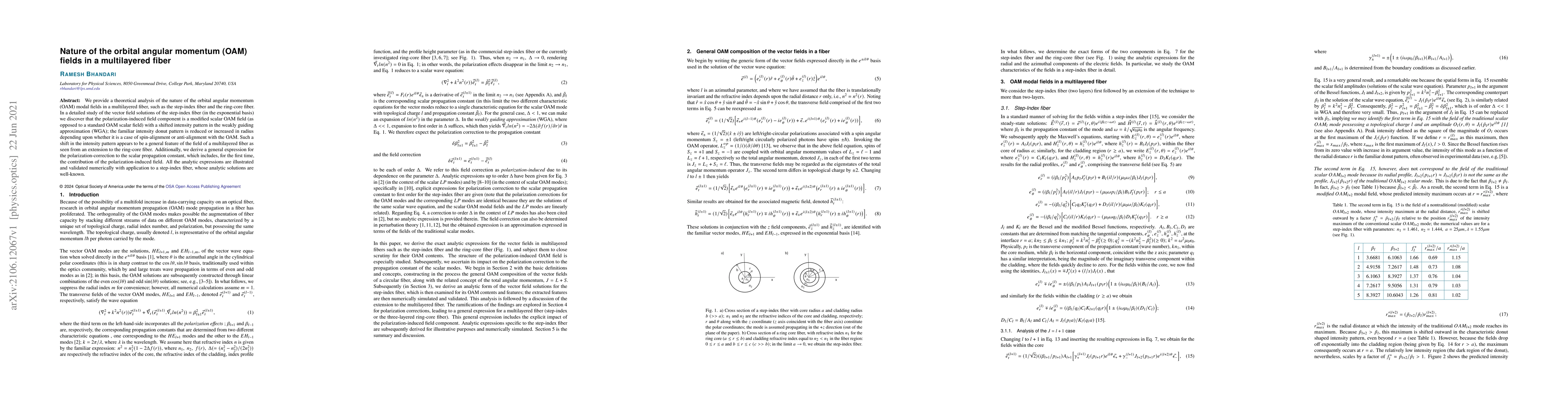 This paper theoretically analyzes the orbital angular momentum (OAM) modal fields in multilayered fibers, revealing that the polarization-induced field component is a modified scalar OAM field with a shifted intensity pattern in the weakly guiding approximation. It also extends findings to ring-core fibers and provides a general expression for the polarization-correction to the scalar propagation constant.