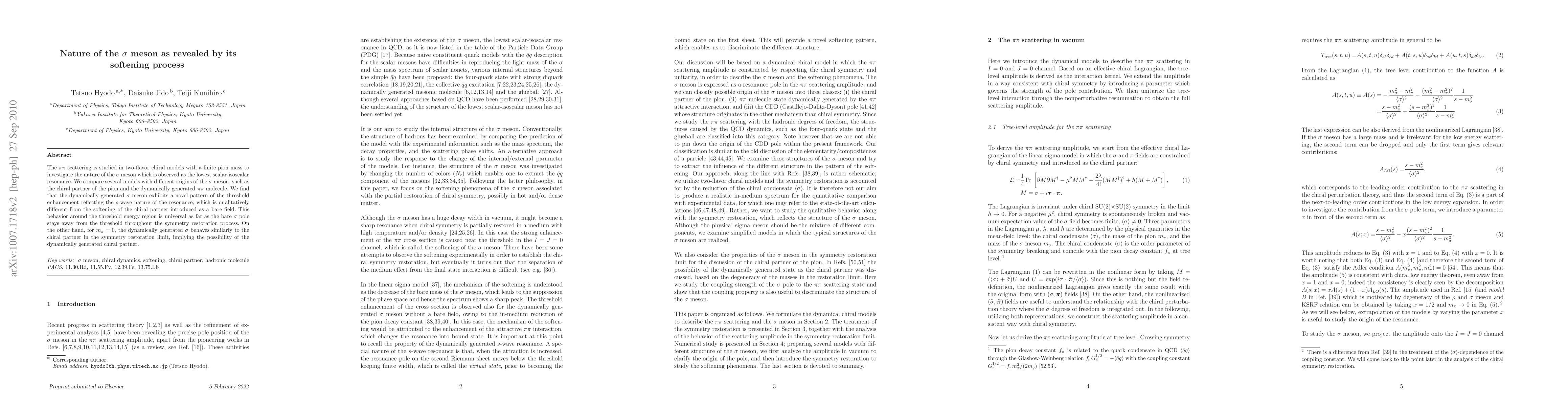 This paper investigates the nature of the sigma meson through pi pi scattering in two-flavor chiral models, finding that the dynamically generated sigma meson shows a unique threshold enhancement, differing from the softening behavior of its chiral partner. This distinct behavior is universal when the sigma pole remains away from the threshold during symmetry restoration.