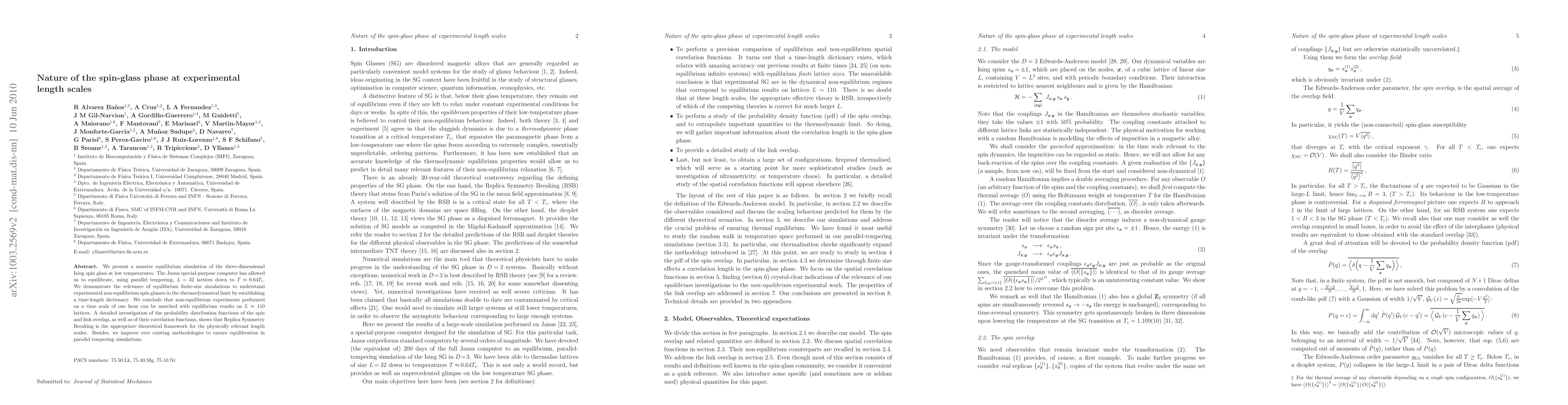 We present a massive equilibrium simulation of the three-dimensional Ising spin glass at low temperatures. The Janus special-purpose computer has allowed us to equilibrate, using parallel tempering, L=32 lattices down to T=0.64 Tc. We demonstrate the relevance of equilibrium finite-size simulations to understand experimental non-equilibrium spin glasses in the thermodynamical limit by establishing a time-length dictionary. We conclude that non-equilibrium experiments performed on a time scale of one hour can be matched with equilibrium results on L=110 lattices. A detailed investigation of the probability distribution functions of the spin and link overlap, as well as of their correlation functions, shows that Replica Symmetry Breaking is the appropriate theoretical framework for the physically relevant length scales. Besides, we improve over existing methodologies to ensure equilibration in parallel tempering simulations.