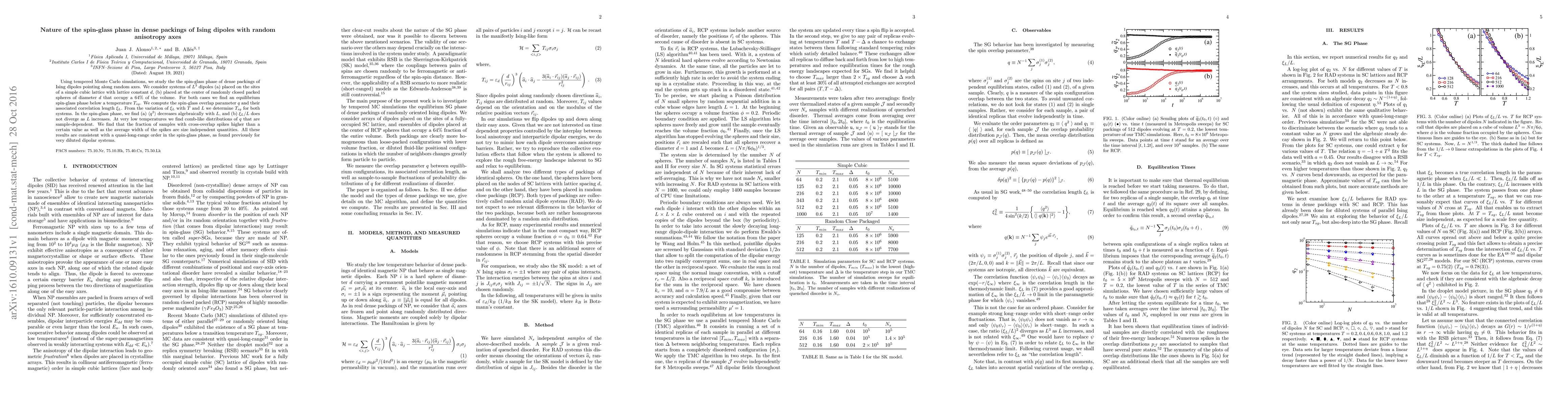 Researchers study spin-glass phase in dense Ising dipole systems with random anisotropy axes, finding quasi-long-range order and consistent behavior across different system sizes and temperatures.