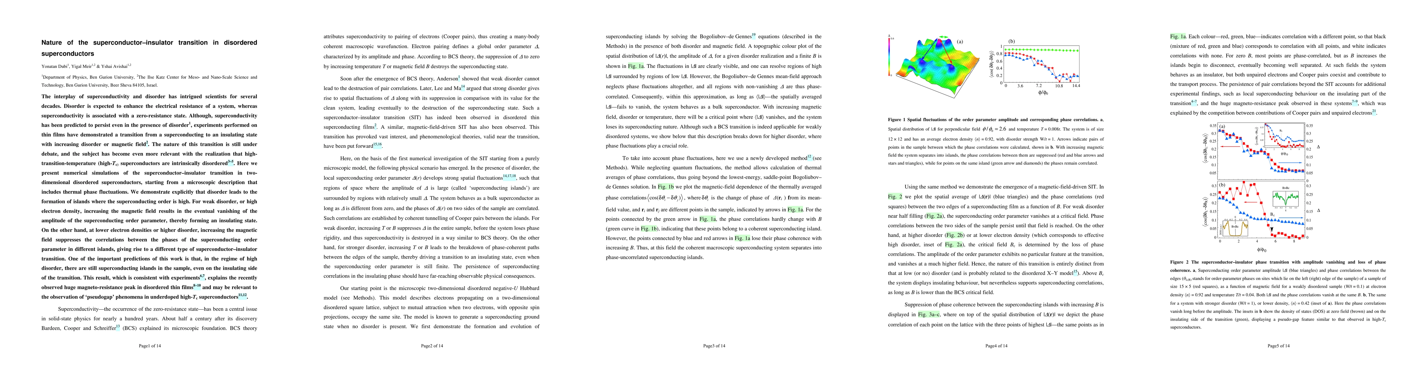 This paper investigates the superconductor-insulator transition in disordered superconductors using Bogoliubov-De-Gennes equations and a Monte-Carlo approach. It finds that disorder creates 'islands' of strong superconductivity, and while weak disorder leads to an insulating state under high magnetic fields, strong disorder results in persistent islands and phase fluctuations, also causing an insulating state.