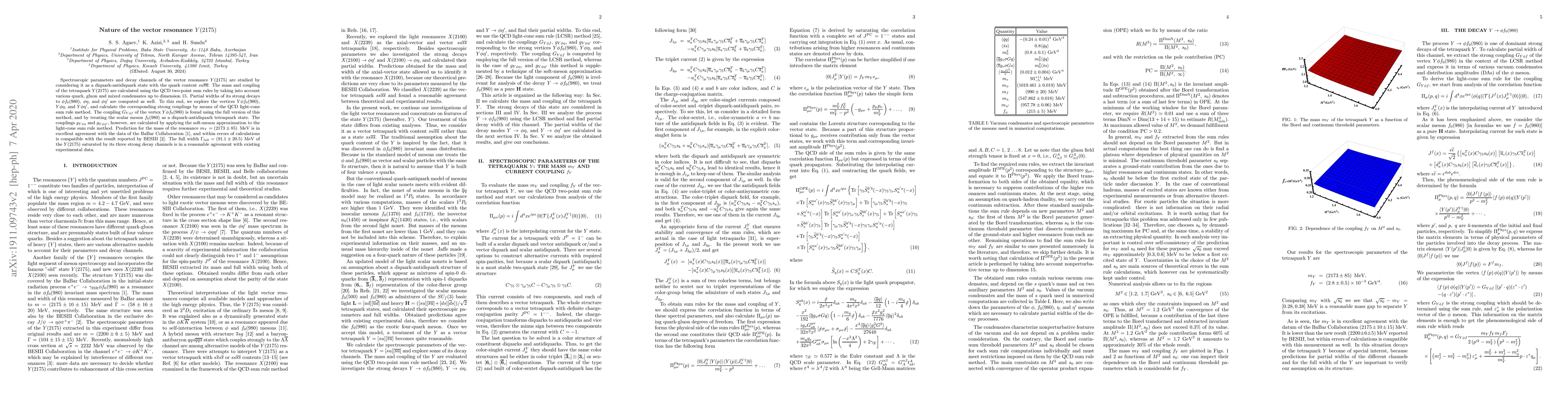 This paper investigates the nature of the vector resonance $Y(2175)$ as a diquark-antidiquark state, calculating its mass and coupling using QCD two-point sum rules, and predicting its mass and decay widths in agreement with experimental data.