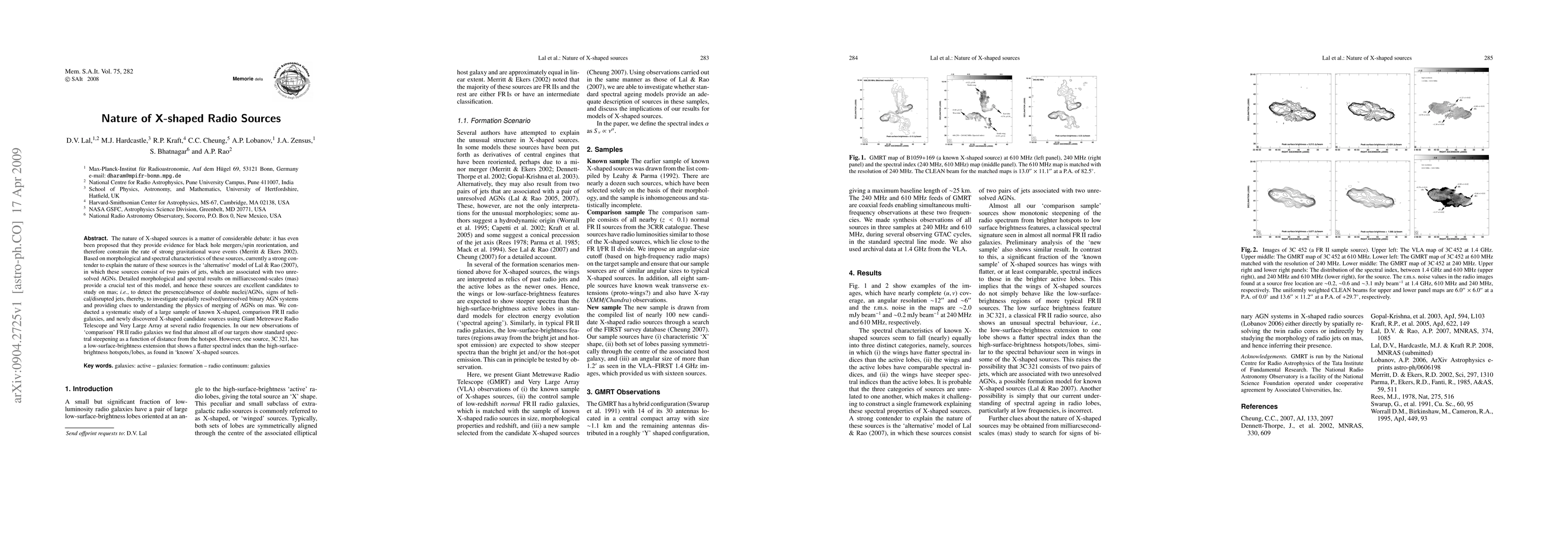 This study investigates X-shaped radio sources, which are thought to result from two unresolved AGNs with pairs of jets each. Utilizing the GMRT and VLBA, the research examined known X-shaped sources and discovered candidates, finding that most sources display typical spectral steepening. However, 3C 321 showed a low-surface-brightness extension with a flatter spectral index, suggesting complexity in understanding these sources' nature and implications for binary AGN systems.