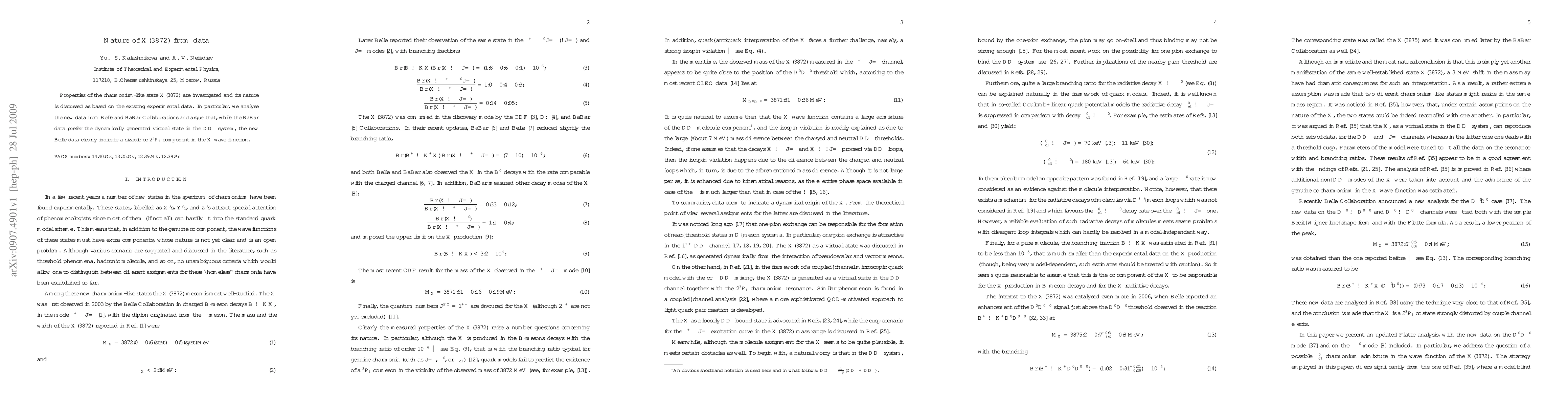 Properties of the charmonium-like state X(3872) are investigated and its nature is discussed as based on the existing experimental data. In particular, we analyse the new data from Belle and BaBar Collaborations and argue that, while the BaBar data prefer the dynamically generated virtual state in the D\bar{D}* system, the new Belle data clearly indicate a sizable c\bar{c} 2^3P_1 component in the X wave function.