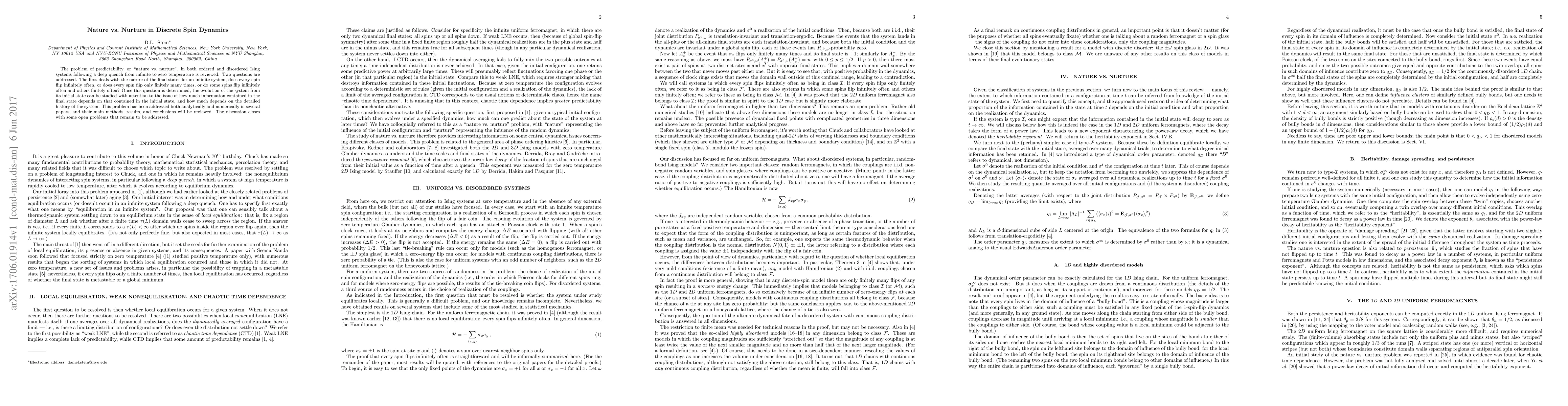 The problem of predictability, or "nature vs. nurture", in both ordered and disordered Ising systems following a deep quench from infinite to zero temperature is reviewed. Two questions are addressed. The first deals with the nature of the final state: for an infinite system, does every spin flip infinitely often, or does every spin flip only finitely many times, or do some spins flip infinitely often and others finitely often? Once this question is determined, the evolution of the system from its initial state can be studied with attention to the issue of how much information contained in the final state depends on that contained in the initial state, and how much depends on the detailed history of the system. This problem has been addressed both analytically and numerically in several papers, and their main methods, results, and conclusions will be reviewed. The discussion closes with some open problems that remain to be addressed.