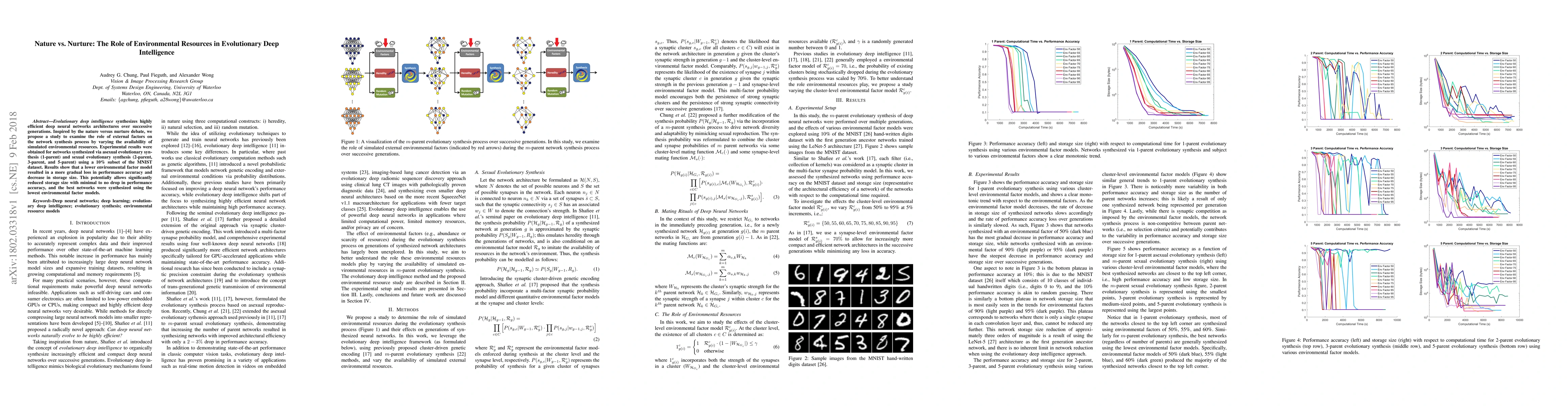 Evolutionary deep intelligence synthesizes highly efficient deep neural networks architectures over successive generations. Inspired by the nature versus nurture debate, we propose a study to examine the role of external factors on the network synthesis process by varying the availability of simulated environmental resources. Experimental results were obtained for networks synthesized via asexual evolutionary synthesis (1-parent) and sexual evolutionary synthesis (2-parent, 3-parent, and 5-parent) using a 10% subset of the MNIST dataset. Results show that a lower environmental factor model resulted in a more gradual loss in performance accuracy and decrease in storage size. This potentially allows significantly reduced storage size with minimal to no drop in performance accuracy, and the best networks were synthesized using the lowest environmental factor models.