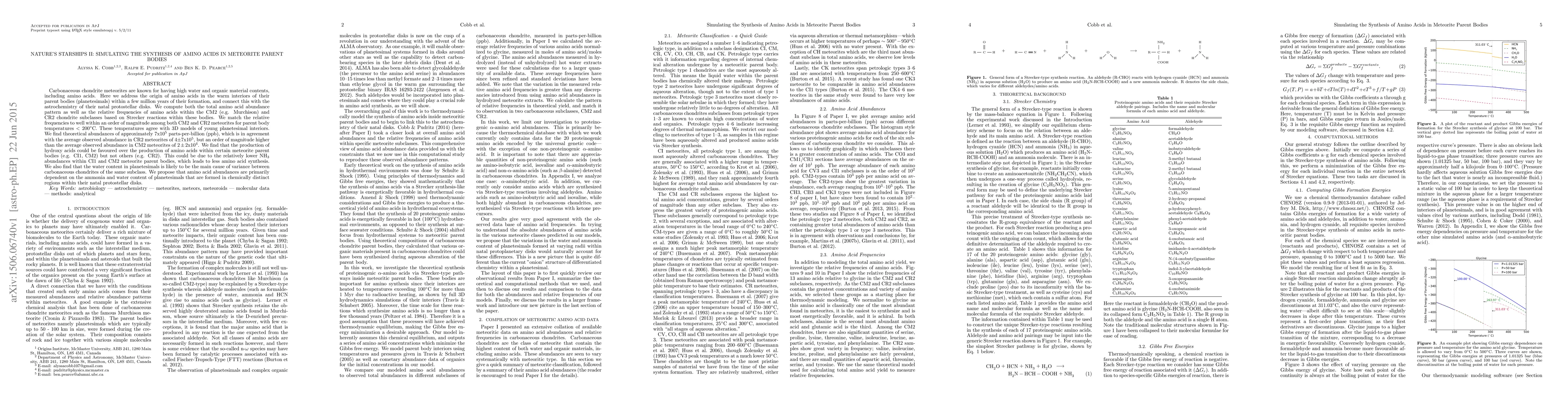This paper simulates the synthesis of amino acids in the warm interiors of meteorite parent bodies, finding that amino acid abundances correlate with ammonia and water content, and that production of hydroxy acids may be favored in certain bodies due to lower ammonia levels. The study matches theoretical abundances with observed data, suggesting that parent body temperatures below 200$^{\circ}$C are consistent with young planetesimal models.