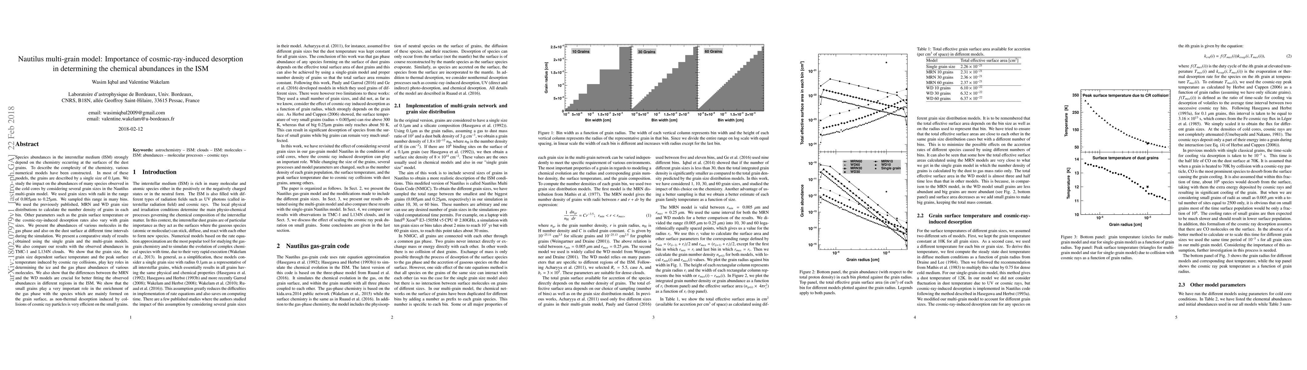 This paper explores the Nautilus multi-grain model to determine the impact of cosmic-ray-induced desorption on chemical abundances in the interstellar medium (ISM). It shows that grain size, surface temperature, and cosmic ray collisions significantly influence the distribution of molecules in both gas and ice phases, with small grains playing a crucial role in gas phase enrichment.