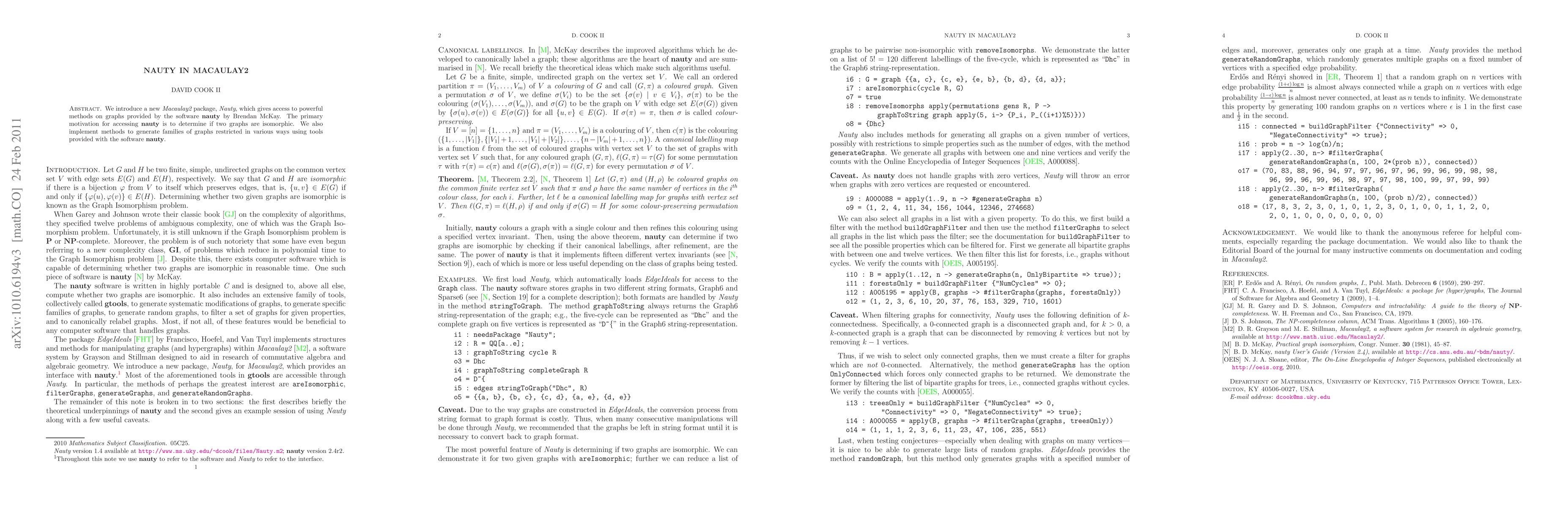 The research used a Macaulay2 package to access nauty's graph algorithms.