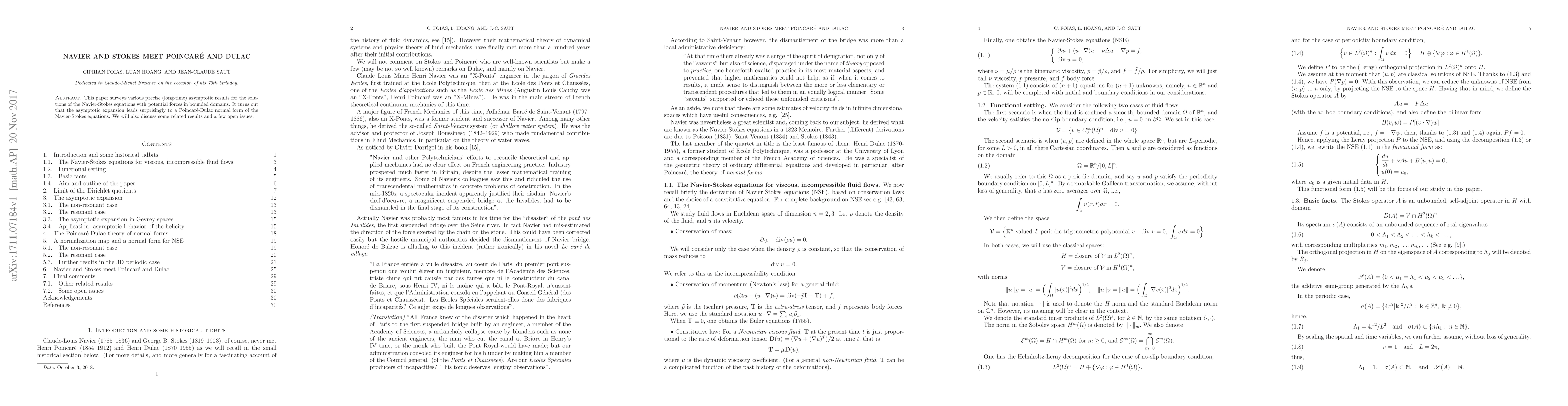 Research reveals that Navier-Stokes equations can be transformed into a simpler form using Poincaré-Dulac normal form, leading to new insights into long-time asymptotic behavior in bounded domains.