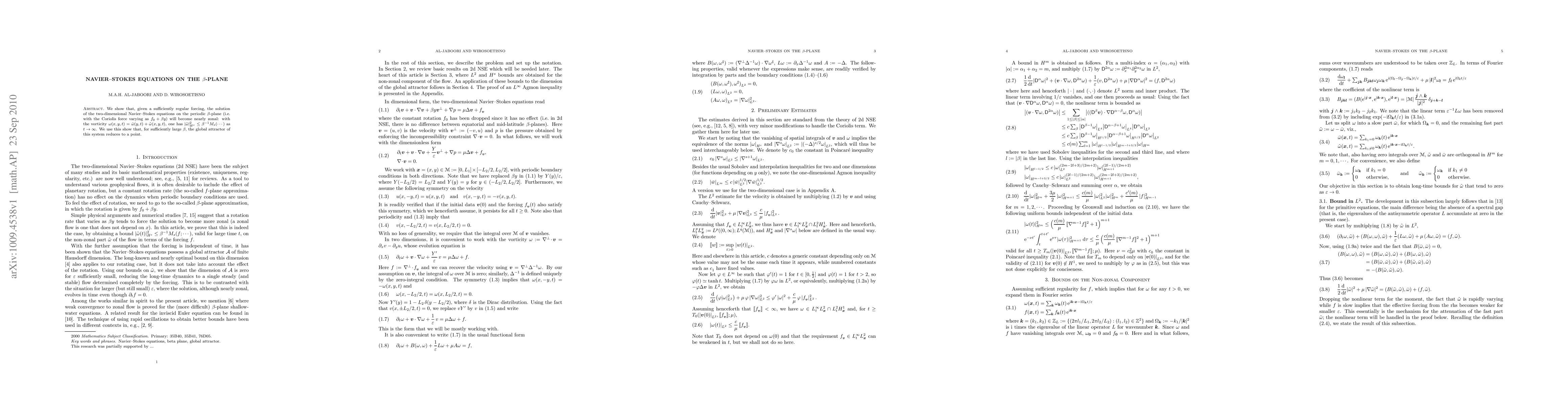 We show that, given a sufficiently regular forcing, the solution of the two-dimensional Navier--Stokes equations on the periodic $\beta$-plane (i.e.\ with the Coriolis force varying as $f_0+\beta y$) will become nearly zonal: with the vorticity $\omega(x,y,t)=\wb(y,t)+\wt(x,y,t)$, one has $|\wt|_{H^s}^2\le\beta^{-1} M_s(\...)$ as $t\to\infty$. We use this show that, for sufficiently large $\beta$, the global attractor of this system reduces to a point.
