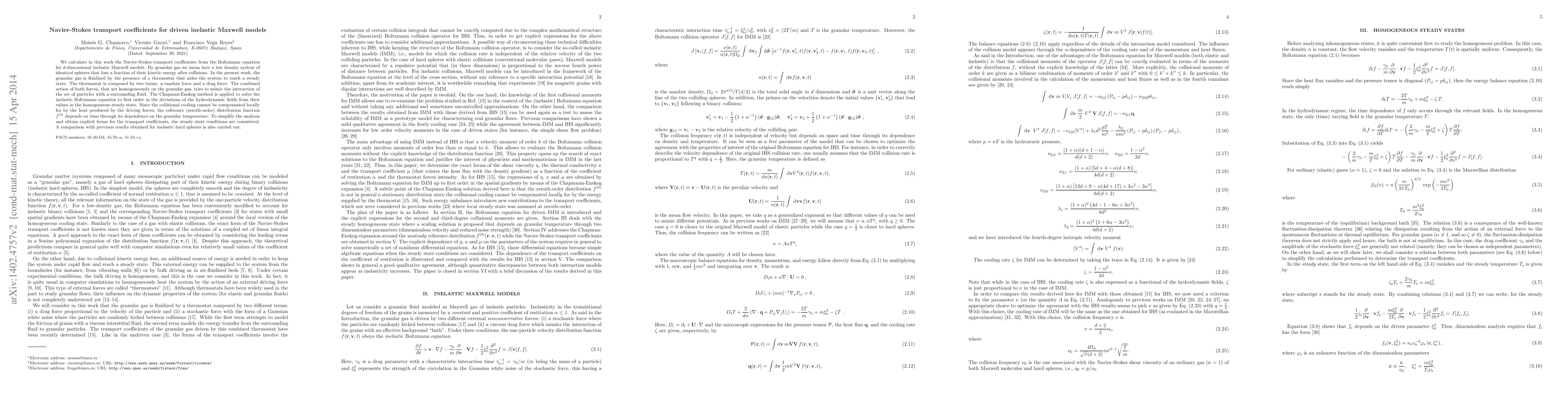 This paper calculates the Navier-Stokes transport coefficients for $d$-dimensional inelastic Maxwell models using the Boltzmann equation, focusing on granular gases that lose kinetic energy post-collision. The system is fluidized by a thermostat with random and drag forces, and the Chapman-Enskog method is applied to derive explicit forms for these coefficients under steady-state conditions.