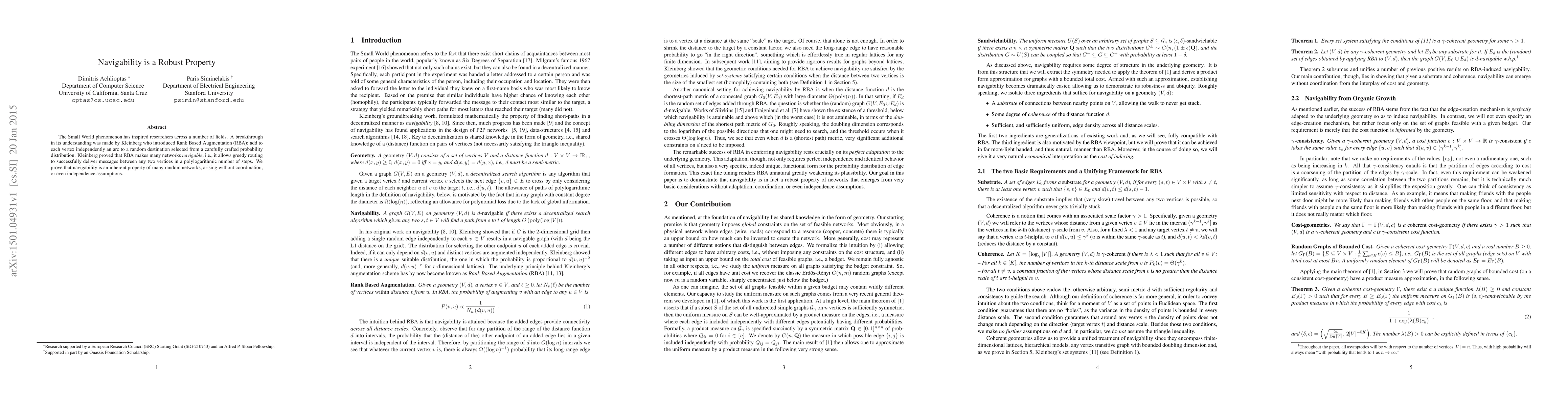 The Small World phenomenon has inspired researchers across a number of fields. A breakthrough in its understanding was made by Kleinberg who introduced Rank Based Augmentation (RBA): add to each vertex independently an arc to a random destination selected from a carefully crafted probability distribution. Kleinberg proved that RBA makes many networks navigable, i.e., it allows greedy routing to successfully deliver messages between any two vertices in a polylogarithmic number of steps. We prove that navigability is an inherent property of many random networks, arising without coordination, or even independence assumptions.