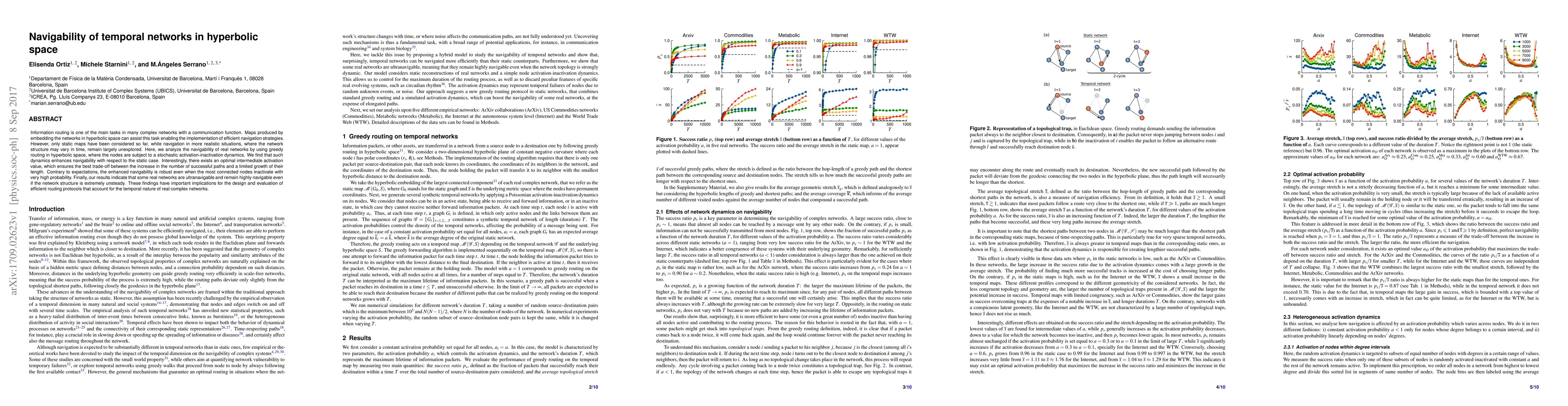This paper investigates the navigability of temporal networks embedded in hyperbolic space using greedy routing, revealing that dynamic activation-inactivation enhances navigability compared to static maps. An optimal activation level maximizes successful paths while minimizing path length, demonstrating robust navigability even when highly connected nodes inactivate frequently.