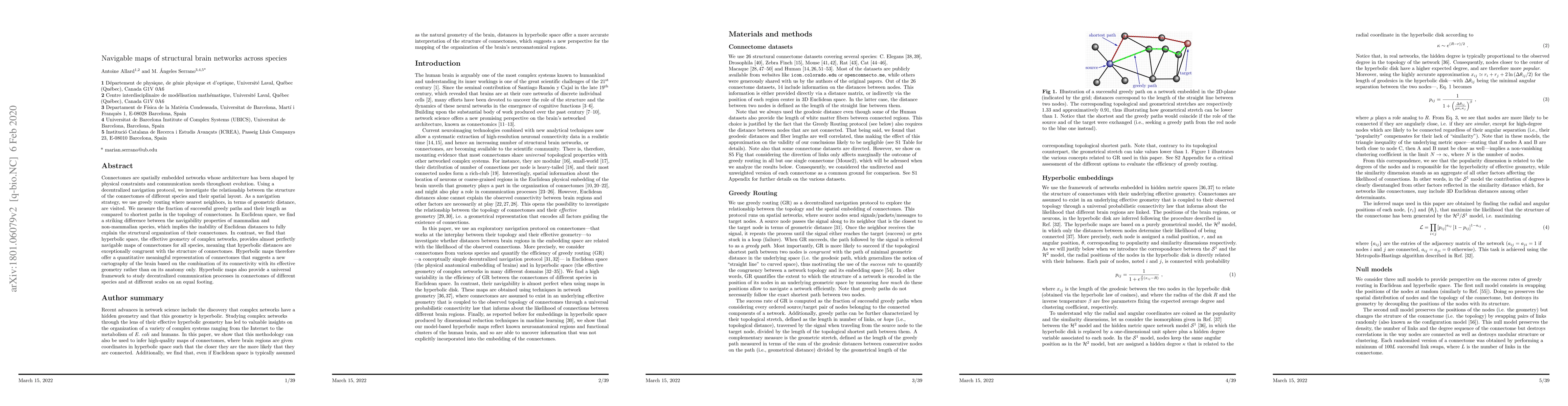 This paper explores the navigability of structural brain networks (connectomes) across various species using a decentralized navigation protocol. It finds that hyperbolic geometry, rather than Euclidean space, provides a more accurate representation of the connectomes' structure, offering a new framework for studying brain connectivity and communication across species.