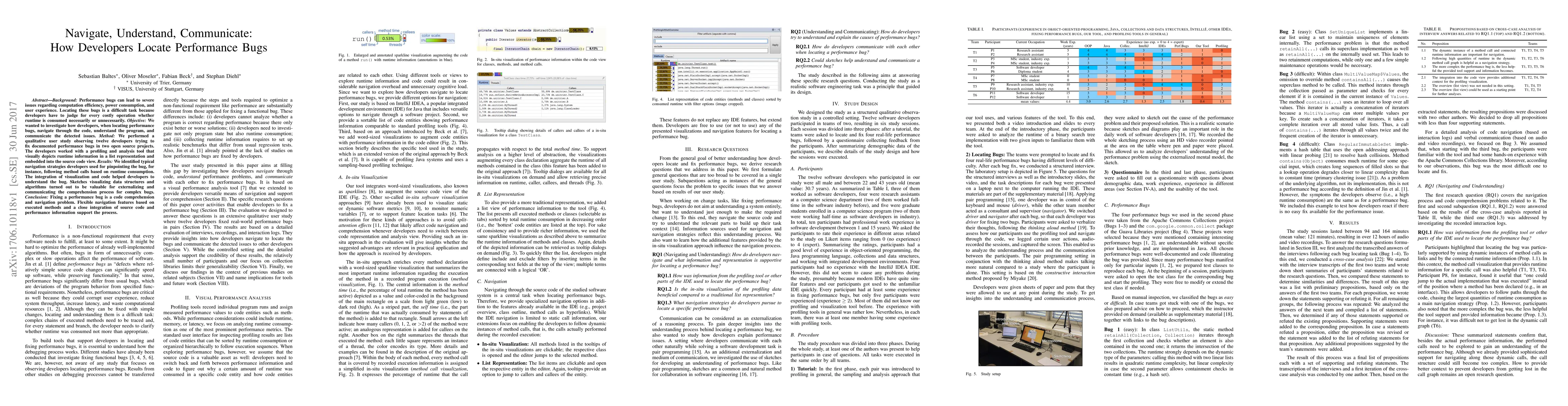 This study explores developers' strategies for locating performance bugs by observing twelve developers using a profiling tool integrated with source code. Findings reveal that effective navigation and comprehension of code, aided by visualizations, are crucial for identifying and communicating performance issues.