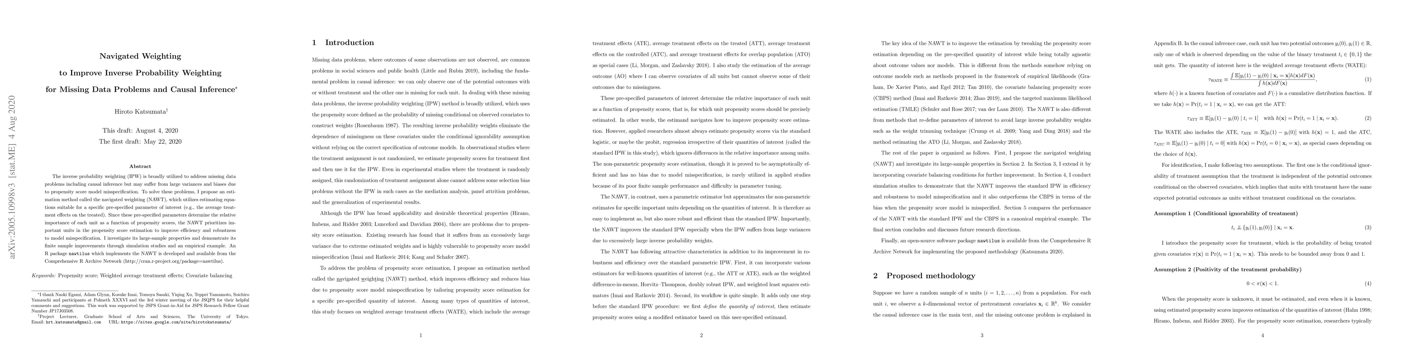 This paper proposes navigated weighting (NAWT) to improve inverse probability weighting (IPW) for handling missing data and causal inference, addressing issues of variance and bias from propensity score model misspecification. The NAWT method prioritizes important units based on pre-specified parameters, enhancing efficiency and robustness. An R package, nawtilus, is developed to implement the NAWT method.