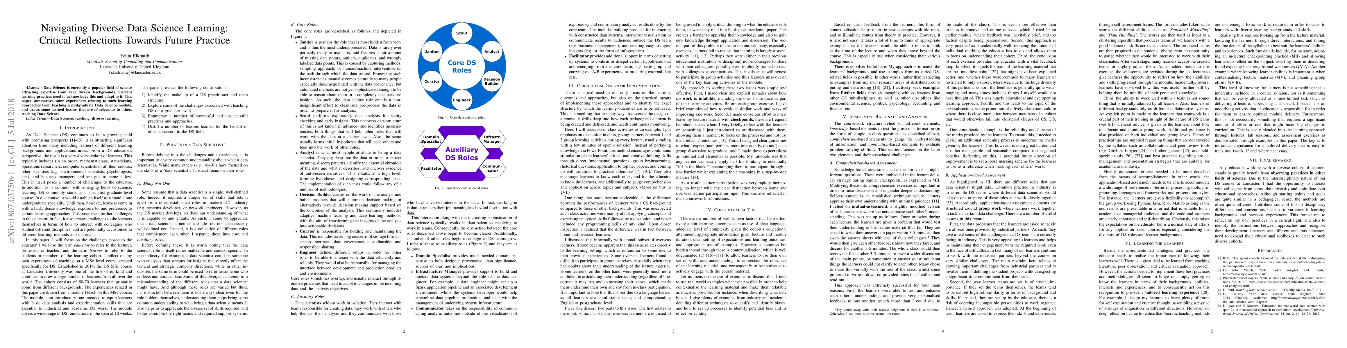The paper introduces core and auxiliary Data Science roles, emphasizing the importance of collaboration and interdisciplinary skills in Data Science education.
