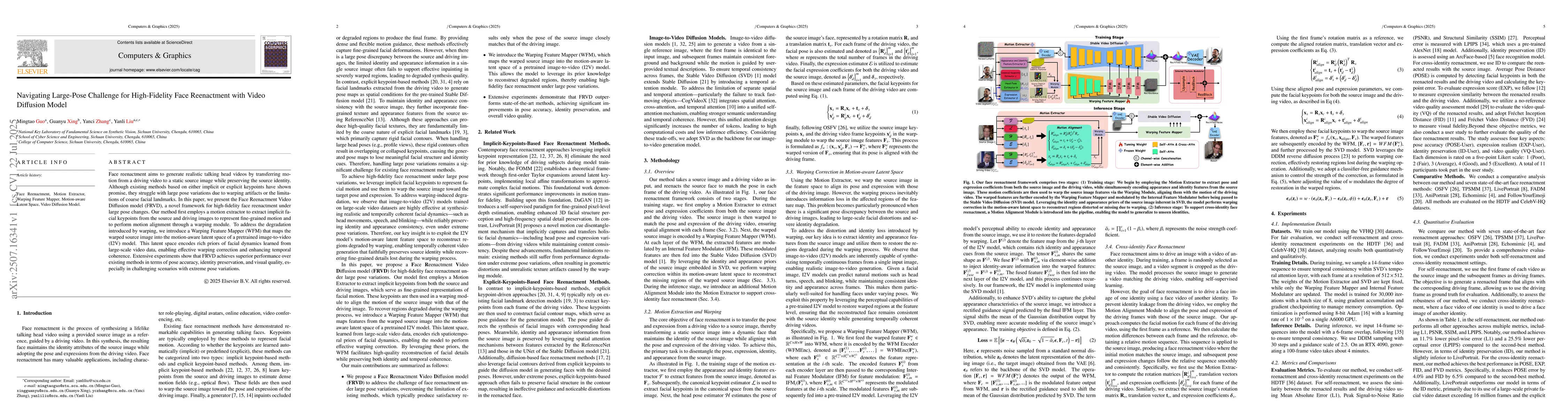 Face reenactment aims to generate realistic talking head videos by transferring motion from a driving video to a static source image while preserving the source identity. Although existing methods based on either implicit or explicit keypoints have shown promise, they struggle with large pose variations due to warping artifacts or the limitations of coarse facial landmarks. In this paper, we present the Face Reenactment Video Diffusion model (FRVD), a novel framework for high-fidelity face reenactment under large pose changes. Our method first employs a motion extractor to extract implicit facial keypoints from the source and driving images to represent fine-grained motion and to perform motion alignment through a warping module. To address the degradation introduced by warping, we introduce a Warping Feature Mapper (WFM) that maps the warped source image into the motion-aware latent space of a pretrained image-to-video (I2V) model. This latent space encodes rich priors of facial dynamics learned from large-scale video data, enabling effective warping correction and enhancing temporal coherence. Extensive experiments show that FRVD achieves superior performance over existing methods in terms of pose accuracy, identity preservation, and visual quality, especially in challenging scenarios with extreme pose variations.
