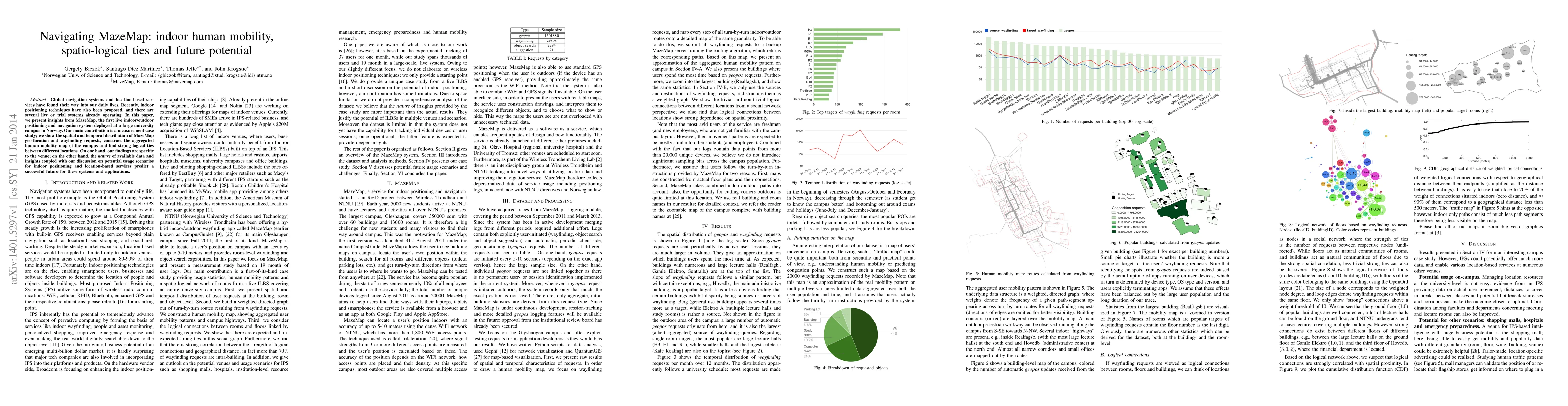 The main technical contribution is the measurement case study and analysis of MazeMap data, providing insights into human mobility patterns and logical ties between locations in an indoor environment.