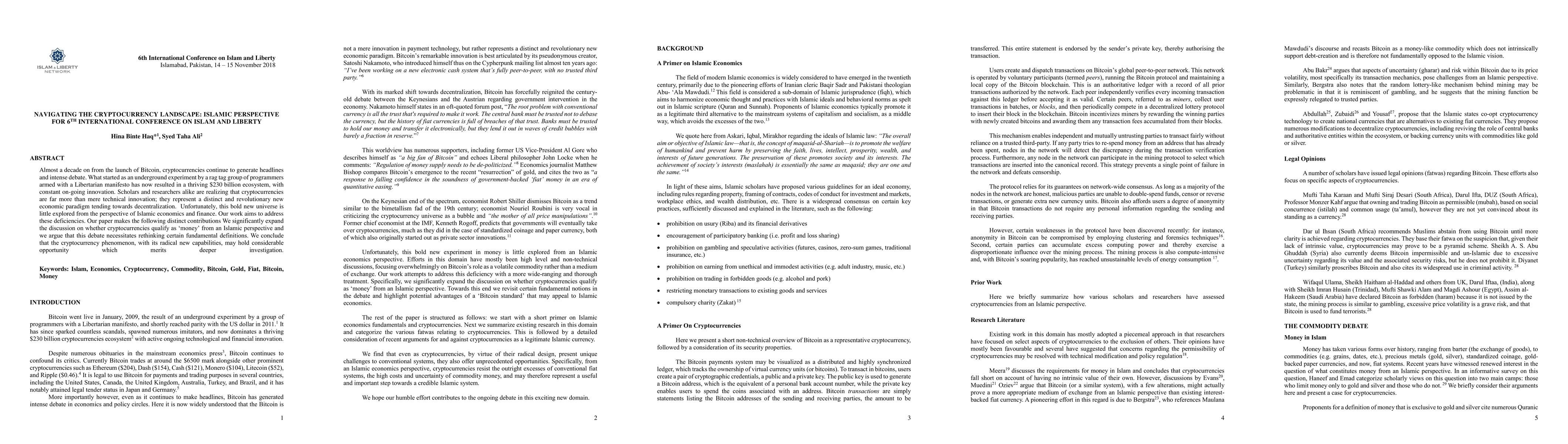 Almost a decade on from the launch of Bitcoin, cryptocurrencies continue to generate headlines and intense debate. What started as an underground experiment by a rag tag group of programmers armed with a Libertarian manifesto has now resulted in a thriving $230 billion ecosystem, with constant on-going innovation. Scholars and researchers alike are realizing that cryptocurrencies are far more than mere technical innovation; they represent a distinct and revolutionary new economic paradigm tending towards decentralization. Unfortunately, this bold new universe is little explored from the perspective of Islamic economics and finance. Our work aims to address these deficiencies. Our paper makes the following distinct contributions We significantly expand the discussion on whether cryptocurrencies qualify as "money" from an Islamic perspective and we argue that this debate necessitates rethinking certain fundamental definitions. We conclude that the cryptocurrency phenomenon, with its radical new capabilities, may hold considerable opportunity which merits deeper investigation.