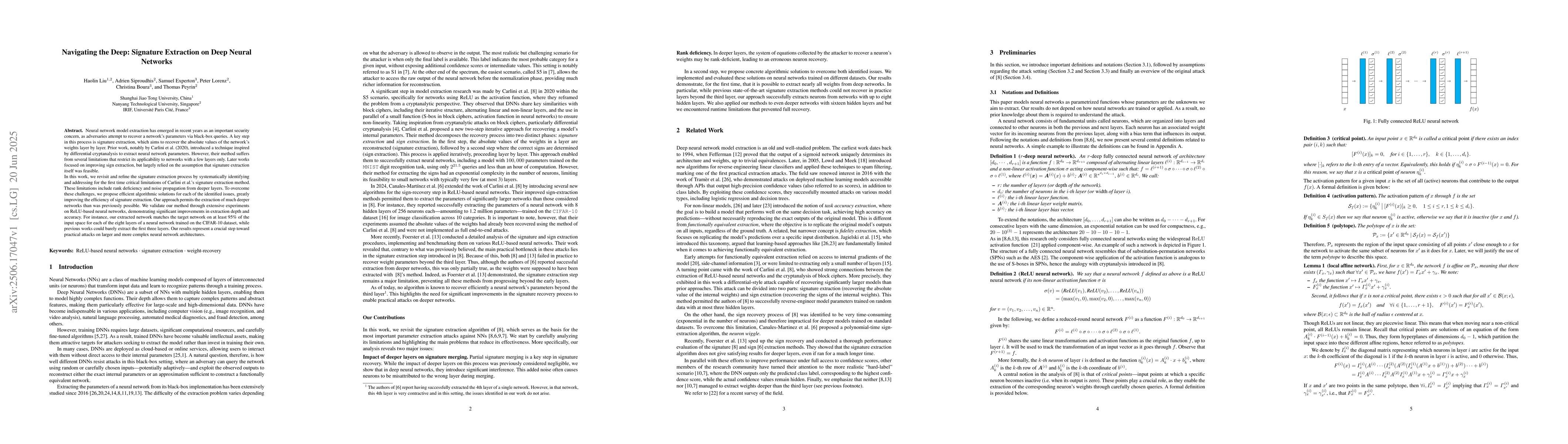 Neural network model extraction has emerged in recent years as an important security concern, as adversaries attempt to recover a network's parameters via black-box queries. A key step in this process is signature extraction, which aims to recover the absolute values of the network's weights layer by layer. Prior work, notably by Carlini et al. (2020), introduced a technique inspired by differential cryptanalysis to extract neural network parameters. However, their method suffers from several limitations that restrict its applicability to networks with a few layers only. Later works focused on improving sign extraction, but largely relied on the assumption that signature extraction itself was feasible. In this work, we revisit and refine the signature extraction process by systematically identifying and addressing for the first time critical limitations of Carlini et al.'s signature extraction method. These limitations include rank deficiency and noise propagation from deeper layers. To overcome these challenges, we propose efficient algorithmic solutions for each of the identified issues, greatly improving the efficiency of signature extraction. Our approach permits the extraction of much deeper networks than was previously possible. We validate our method through extensive experiments on ReLU-based neural networks, demonstrating significant improvements in extraction depth and accuracy. For instance, our extracted network matches the target network on at least 95% of the input space for each of the eight layers of a neural network trained on the CIFAR-10 dataset, while previous works could barely extract the first three layers. Our results represent a crucial step toward practical attacks on larger and more complex neural network architectures.