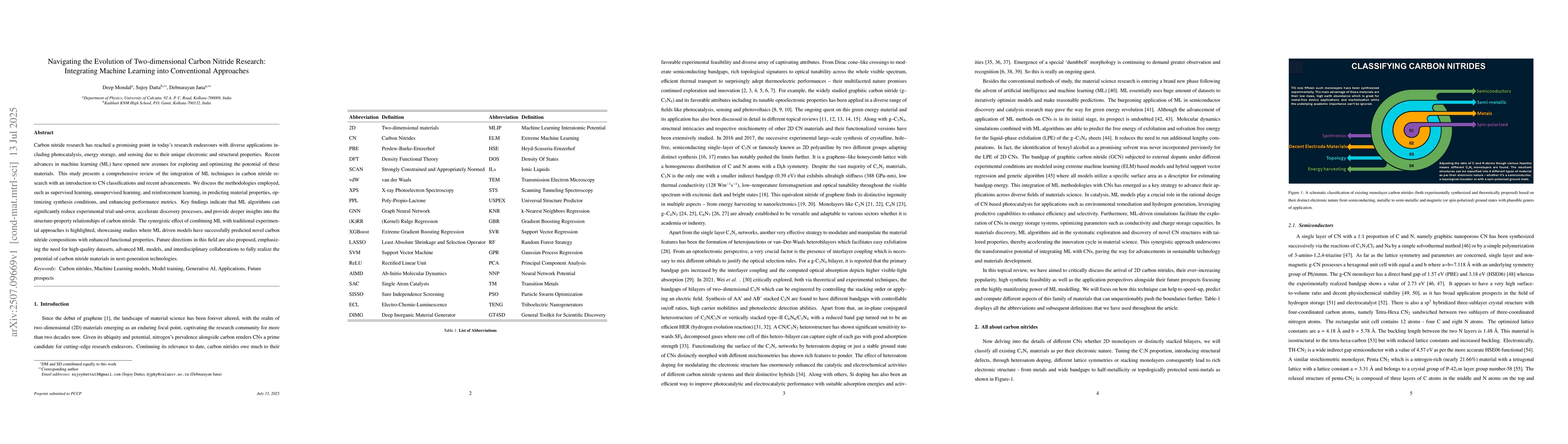 Carbon nitride research has reached a promising point in today's research endeavours with diverse applications including photocatalysis, energy storage, and sensing due to their unique electronic and structural properties. Recent advances in machine learning (ML) have opened new avenues for exploring and optimizing the potential of these materials. This study presents a comprehensive review of the integration of ML techniques in carbon nitride research with an introduction to CN classifications and recent advancements. We discuss the methodologies employed, such as supervised learning, unsupervised learning, and reinforcement learning, in predicting material properties, optimizing synthesis conditions, and enhancing performance metrics. Key findings indicate that ML algorithms can significantly reduce experimental trial-and-error, accelerate discovery processes, and provide deeper insights into the structure-property relationships of carbon nitride. The synergistic effect of combining ML with traditional experimental approaches is highlighted, showcasing studies where ML driven models have successfully predicted novel carbon nitride compositions with enhanced functional properties. Future directions in this field are also proposed, emphasizing the need for high-quality datasets, advanced ML models, and interdisciplinary collaborations to fully realize the potential of carbon nitride materials in next-generation technologies.