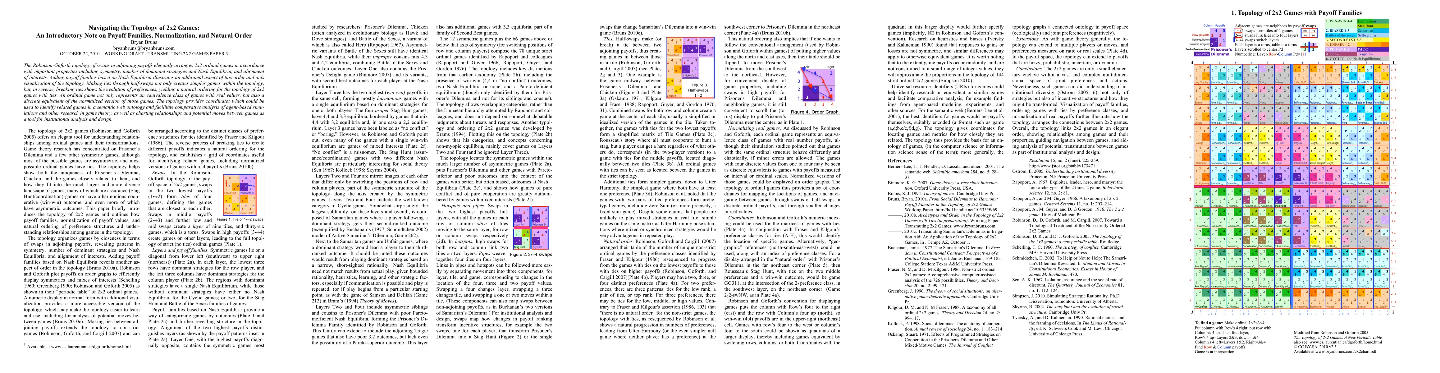 The Robinson-Goforth topology of swaps in adjoining payoffs elegantly arranges 2x2 ordinal games in accordance with important properties including symmetry, number of dominant strategies and Nash Equilibria, and alignment of interests. Adding payoff families based on Nash Equilibria illustrates an additional aspect of this order and aids visualization of the topology. Making ties through half-swaps not only creates simpler games within the topology, but, in reverse, breaking ties shows the evolution of preferences, yielding a natural ordering for the topology of 2x2 games with ties. An ordinal game not only represents an equivalence class of games with real values, but also a discrete equivalent of the normalized version of those games. The topology provides coordinates which could be used to identify related games in a semantic web ontology and facilitate comparative analysis of agent-based simulations and other research in game theory, as well as charting relationships and potential moves between games as a tool for institutional analysis and design.