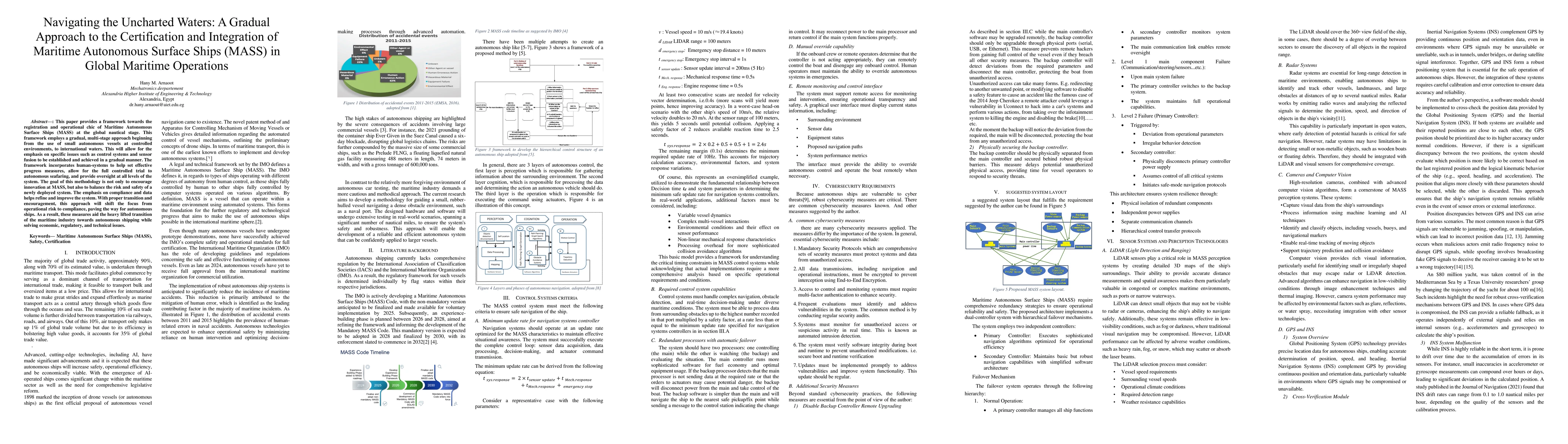 The paper contributes to the maritime domain by proposing a structured, gradual approach to the certification and integration of Maritime Autonomous Surface Ships (MASS), addressing safety, efficiency, and regulatory concerns.