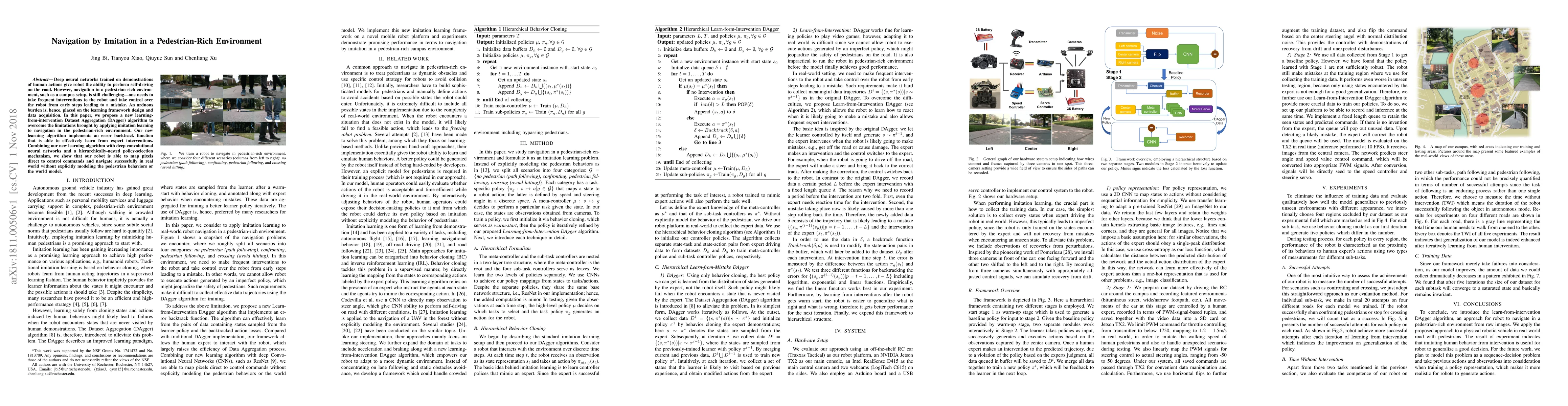 Deep neural networks trained on demonstrations of human actions give robot the ability to perform self-driving on the road. However, navigation in a pedestrian-rich environment, such as a campus setup, is still challenging---one needs to take frequent interventions to the robot and take control over the robot from early steps leading to a mistake. An arduous burden is, hence, placed on the learning framework design and data acquisition. In this paper, we propose a new learning-from-intervention Dataset Aggregation (DAgger) algorithm to overcome the limitations brought by applying imitation learning to navigation in the pedestrian-rich environment. Our new learning algorithm implements an error backtrack function that is able to effectively learn from expert interventions. Combining our new learning algorithm with deep convolutional neural networks and a hierarchically-nested policy-selection mechanism, we show that our robot is able to map pixels direct to control commands and navigate successfully in real world without explicitly modeling the pedestrian behaviors or the world model.